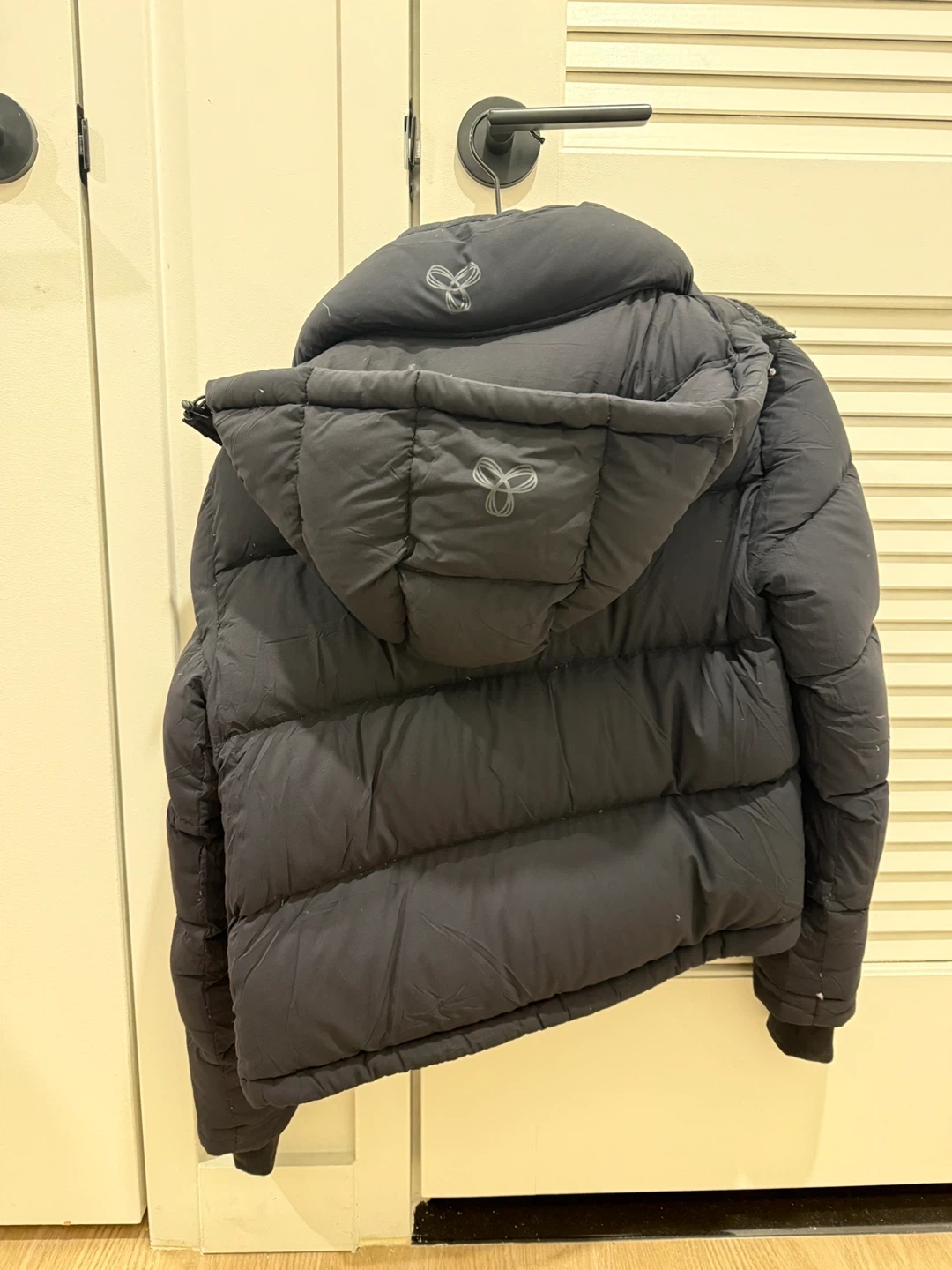 This is a Tna The Super Puff puffer jacket. It's a black, cropped puffer jacket. It's insulated for warmth and has a full zip closure.