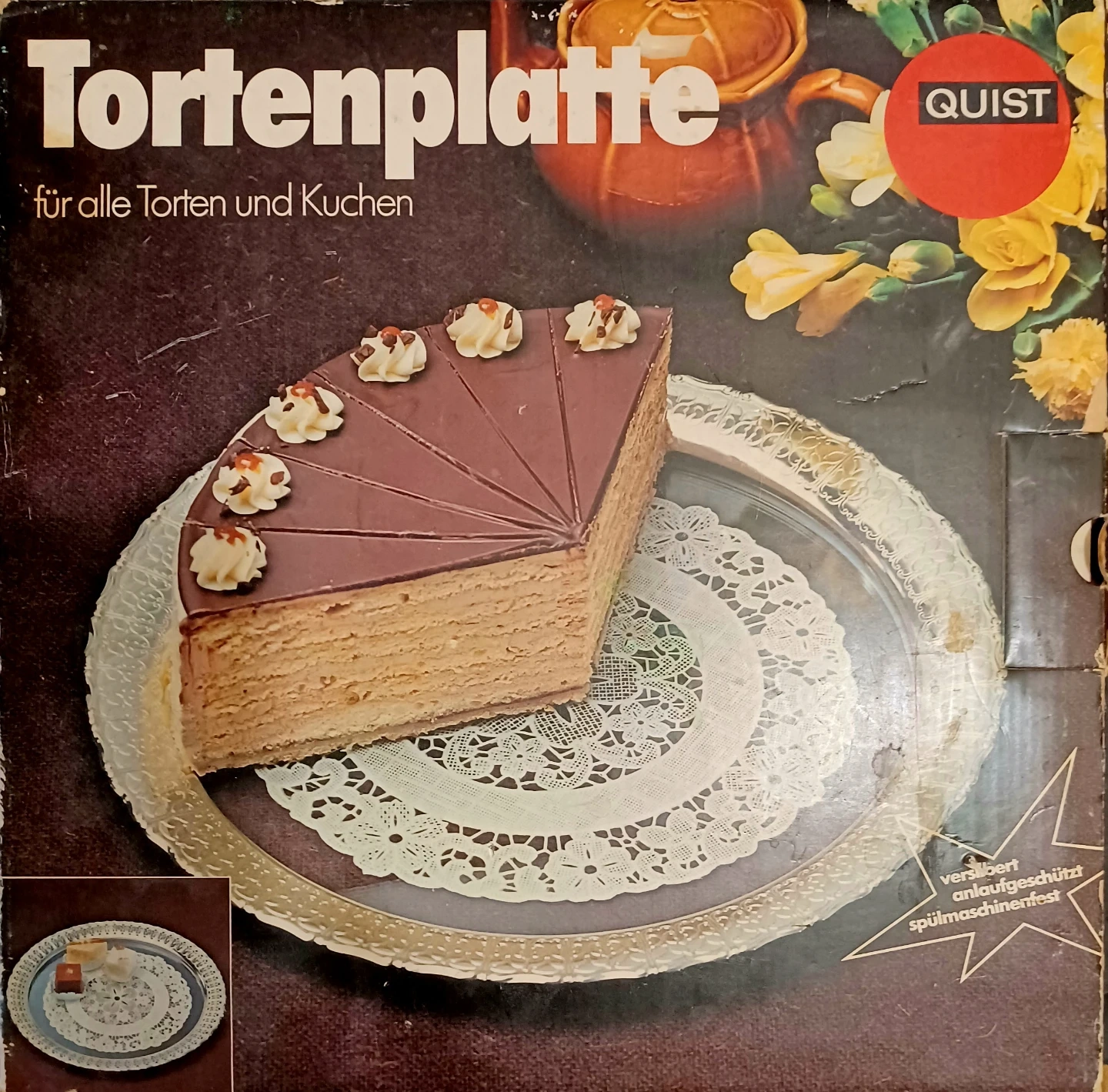 Unique , New Vintage 1960s West German Quist Tarnish Resistant Silver and Glass Tray, Lace Doily Pattern, perfect for displaying cakes or other decorative items.