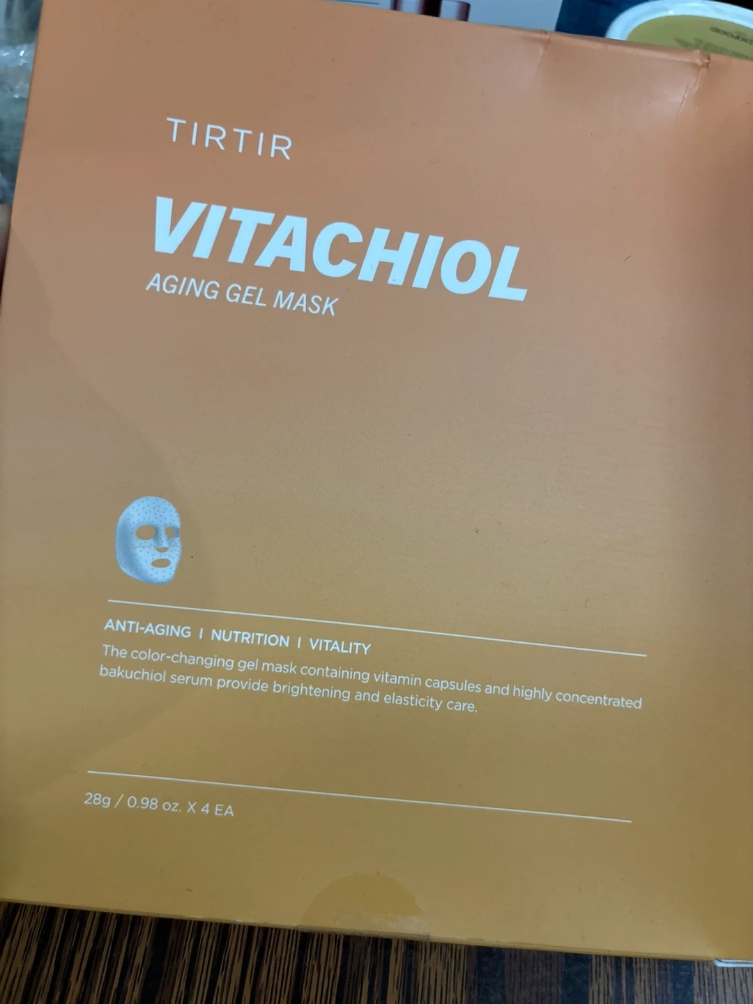 This Tirtir Vitachiol Aging Gel Mask is designed for anti-aging, nutrition, and vitality. The color-changing gel mask contains vitamin capsules and bakuchiol serum for brightening and elasticity care. Each mask is 28g / 0.98 oz, and the package includes 4 EA.