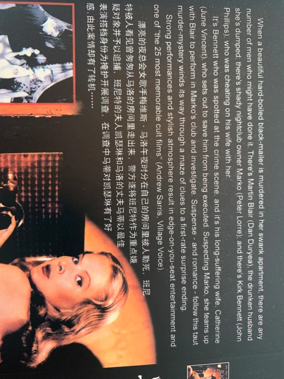 A murder mystery unfolds in this thrilling film. It's a suspense and romance story with edge-of-your-seat entertainment. The DVD includes strong performances and stylish atmosphere
