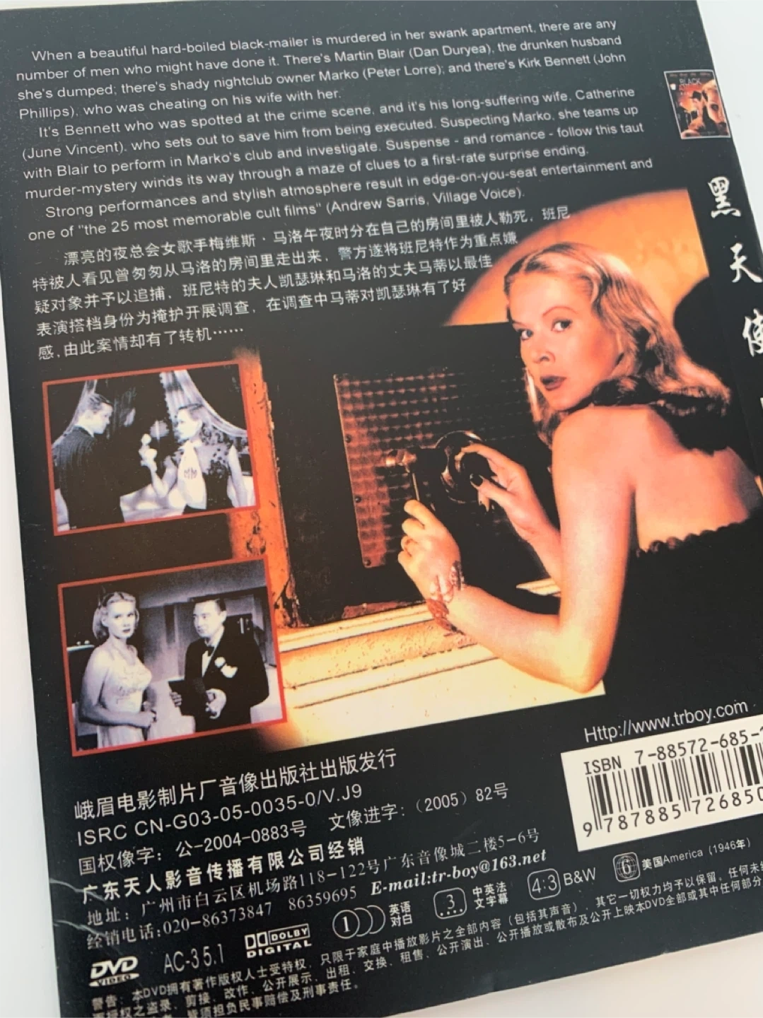 A murder mystery unfolds in this thrilling film. It's a suspense and romance story with edge-of-your-seat entertainment. The DVD includes strong performances and stylish atmosphere