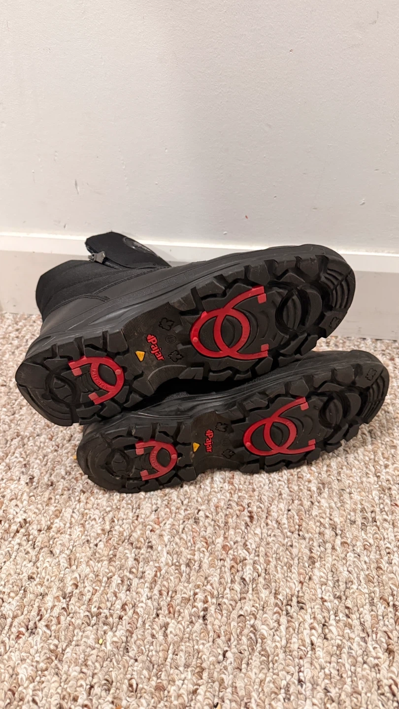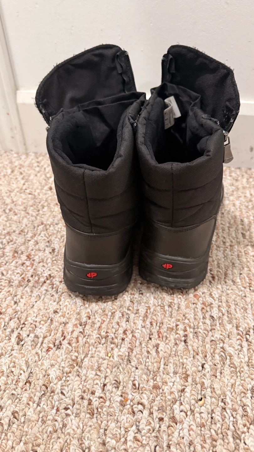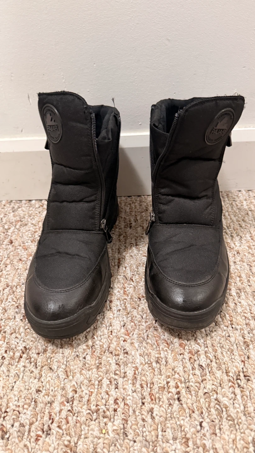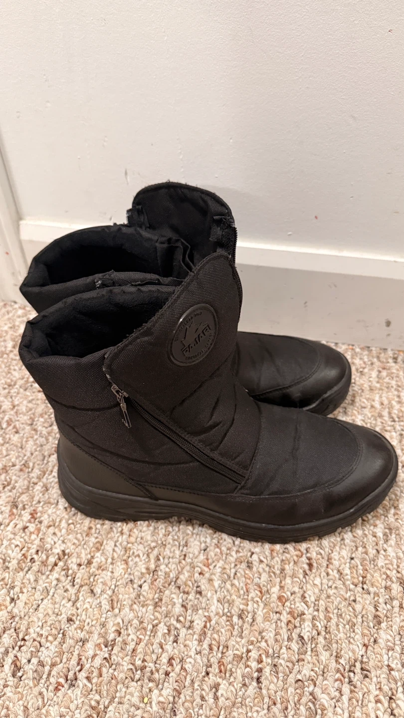 Pajar winter boots in black. Features a zipper closure and a durable sole. Great for keeping your feet warm and dry in cold weather! Used only couple of times