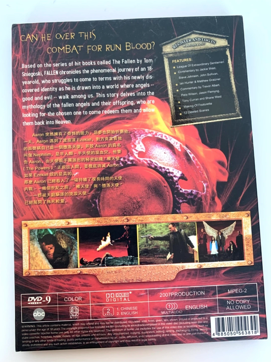 This DVD set includes The Complete First Season of Fallen. It features Dolby Digital sound and is in MPEG-2 format. The discs are in English and Chinese.