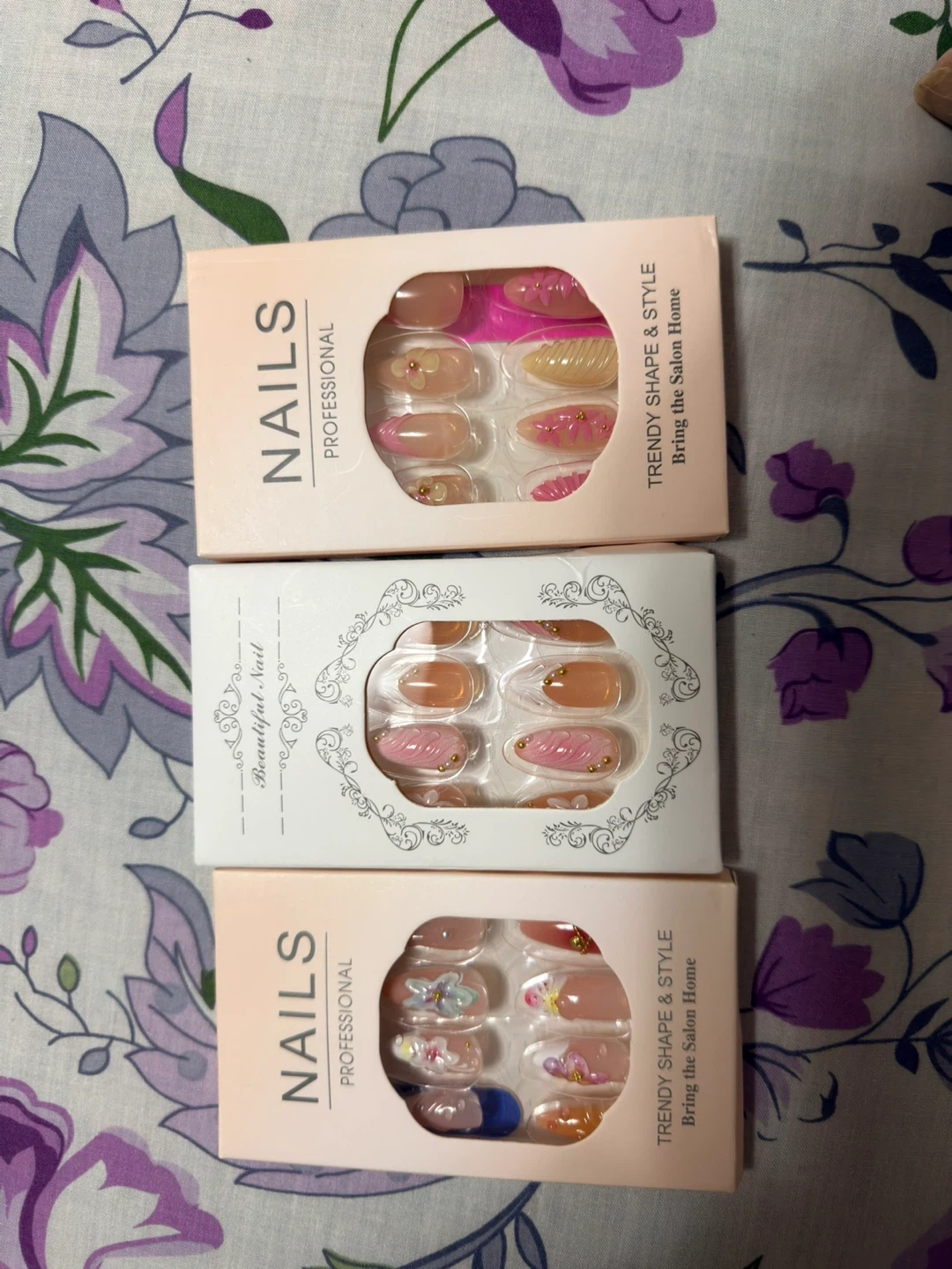 This kit includes professional press-on nails with trendy shapes and stylish designs. Bring salon-quality style right to your home! These nails are great for a quick manicure or for special occasions. $10 for each