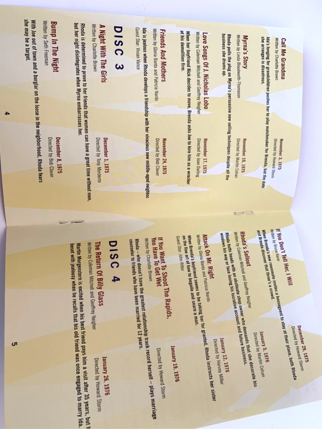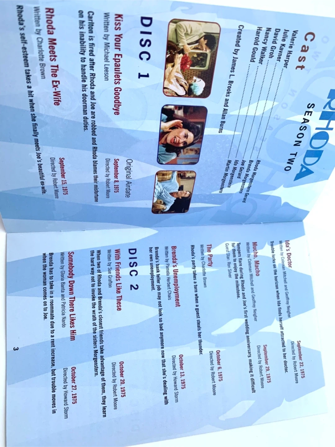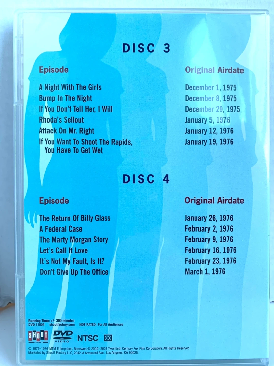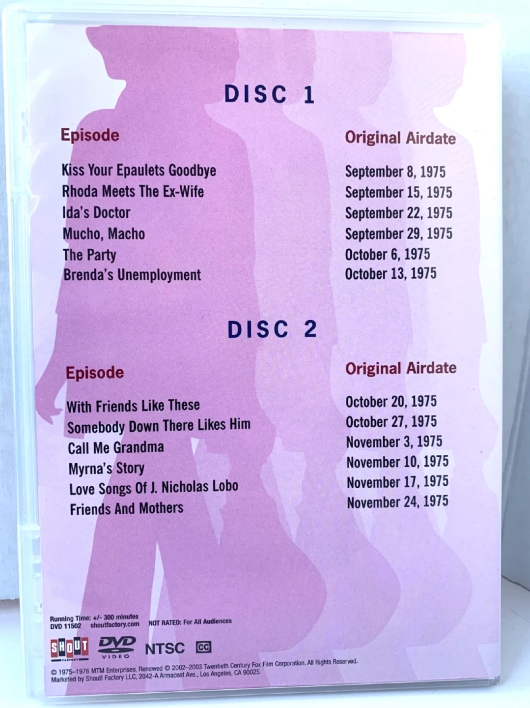 This DVD set features Rhoda Season Two. It includes four discs with all the episodes from the second season of the popular Mary Tyler Moore Show spin-off. Episodes include "Kiss Your Epaulets Goodbye" through "Don't Give Up The Office". Running time is +/- 10 hours.