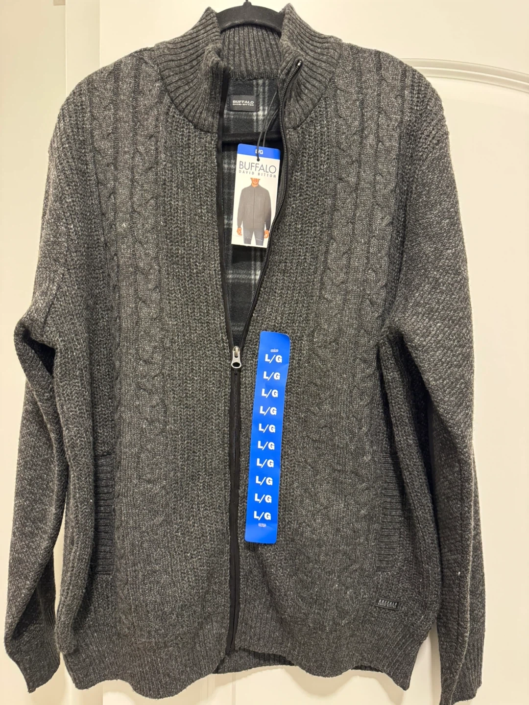 Buy & SellBuffalo David Bitton Men's Full Zip Sweater - Charcoal GreyBuffalo David Bitton Men's Full Zip Sweater - Charcoal Grey$25Buffalo David Bitton men's charcoal grey cable knit sweater. It features a full zip front and a plaid lining. Size large.ConditionNewSizeLargeWHERE TO MEETSetonstoneView MapSELLERverifiedWale ASeton801 review0 chats·1 favorites·10 viewsSEND CHAT TO SELLERHi Wale A! I’m interested in your listing.Hi Wale A! I’m interested in your listing.Get the Karrot app to chatSign In to chat