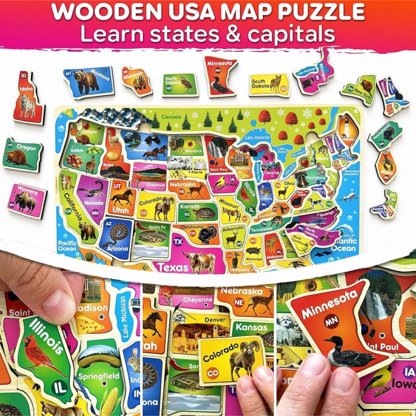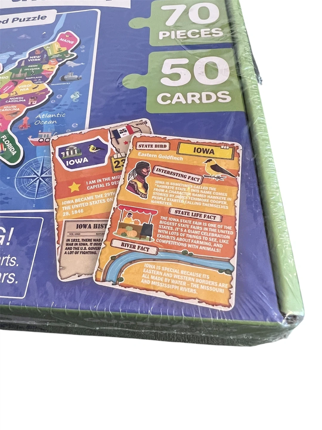 🧩 Quokka Map of the USA state-shaped puzzle (70 pieces + 50 learning cards)