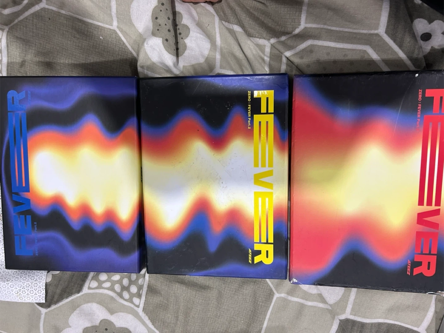 This is a set of ATEEZ ZERO : FEVER album series CDs. Includes Epilogue and multiple parts from the FEVER series. Various colors and designs are present.
