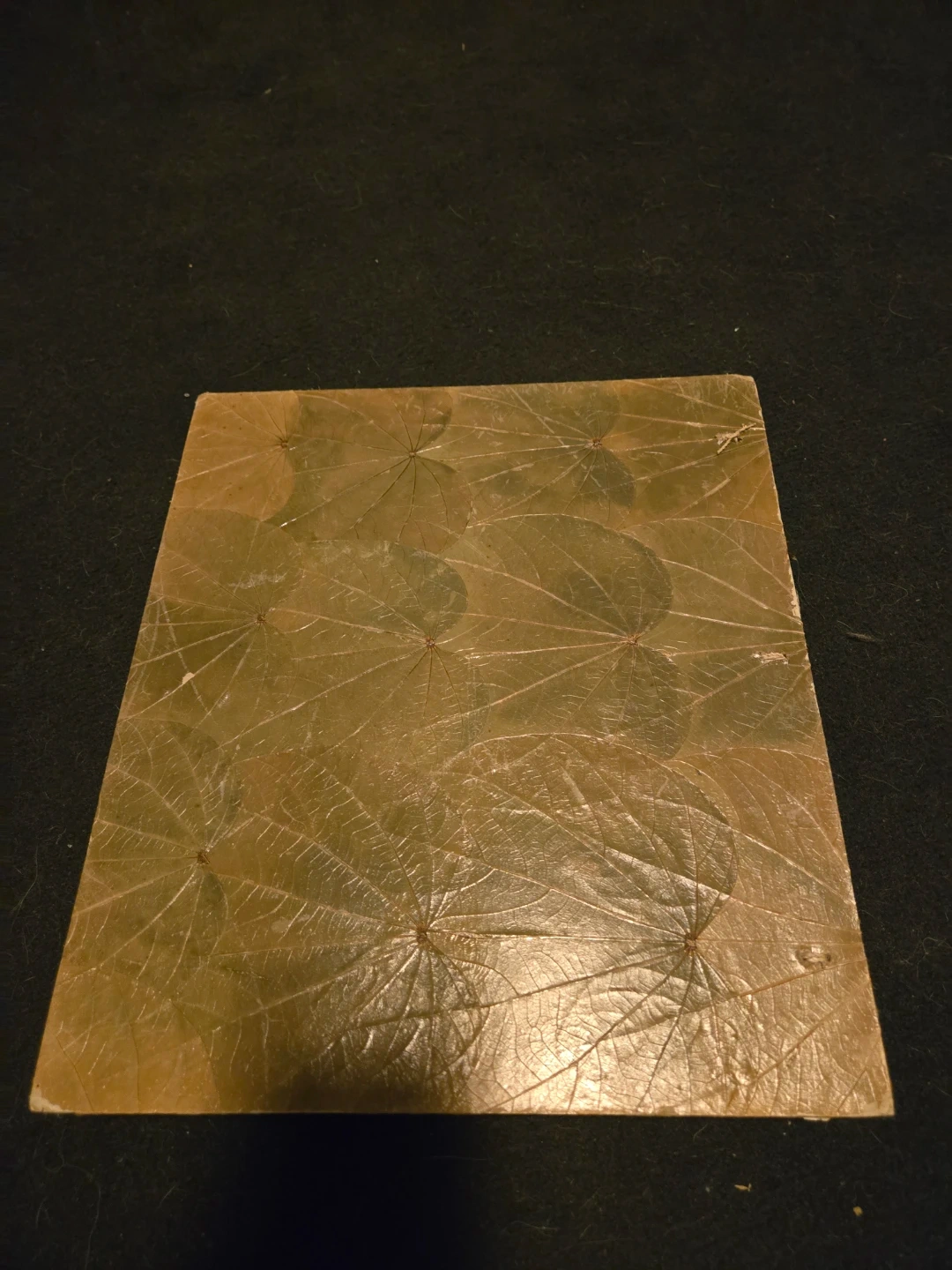 This unique album features a decorative cover made from dried leaves and natural materials. It's designed for preserving your cherished memories. The interior includes photo mounting corners on one side and blank pages on the other.
