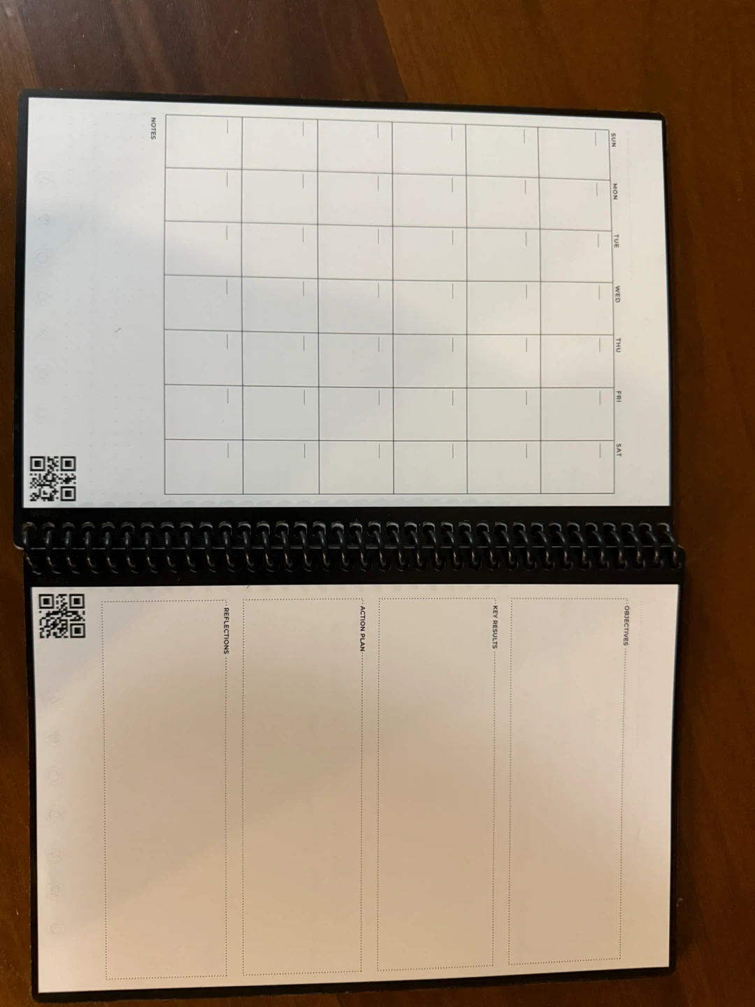 This is a Rocketbook Fusion notebook with a reusable design. It includes monthly, weekly, and daily planning pages, plus goal-setting sections. It's great for staying organized and eco-friendly!