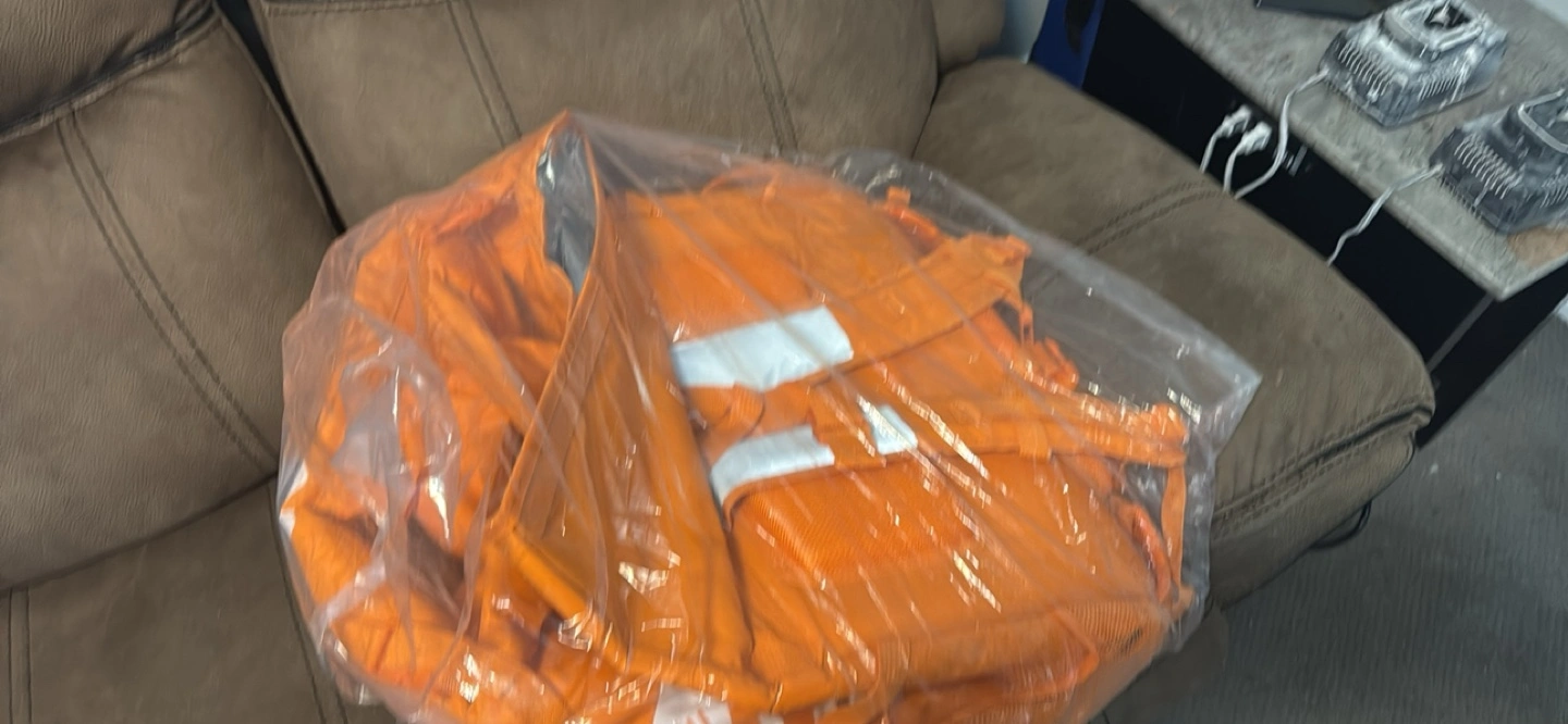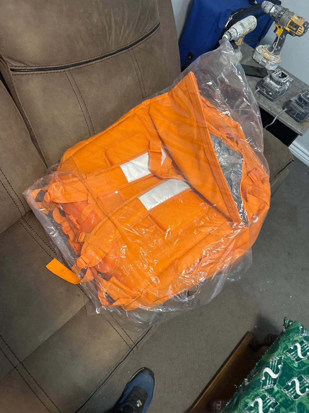 This is an orange XL skip roll top delivery rucksack. It's designed for delivery purposes. The material appears to be durable for carrying items.