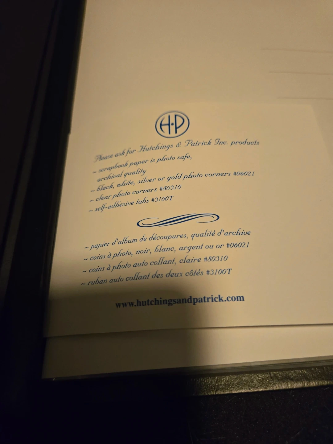 This is a black photo album from Hatchings & Patrick Inc. It has archival quality, safe pages for photos. It includes clear photo corners and self-adhesive tabs. This album is great for storing your most cherished memories!