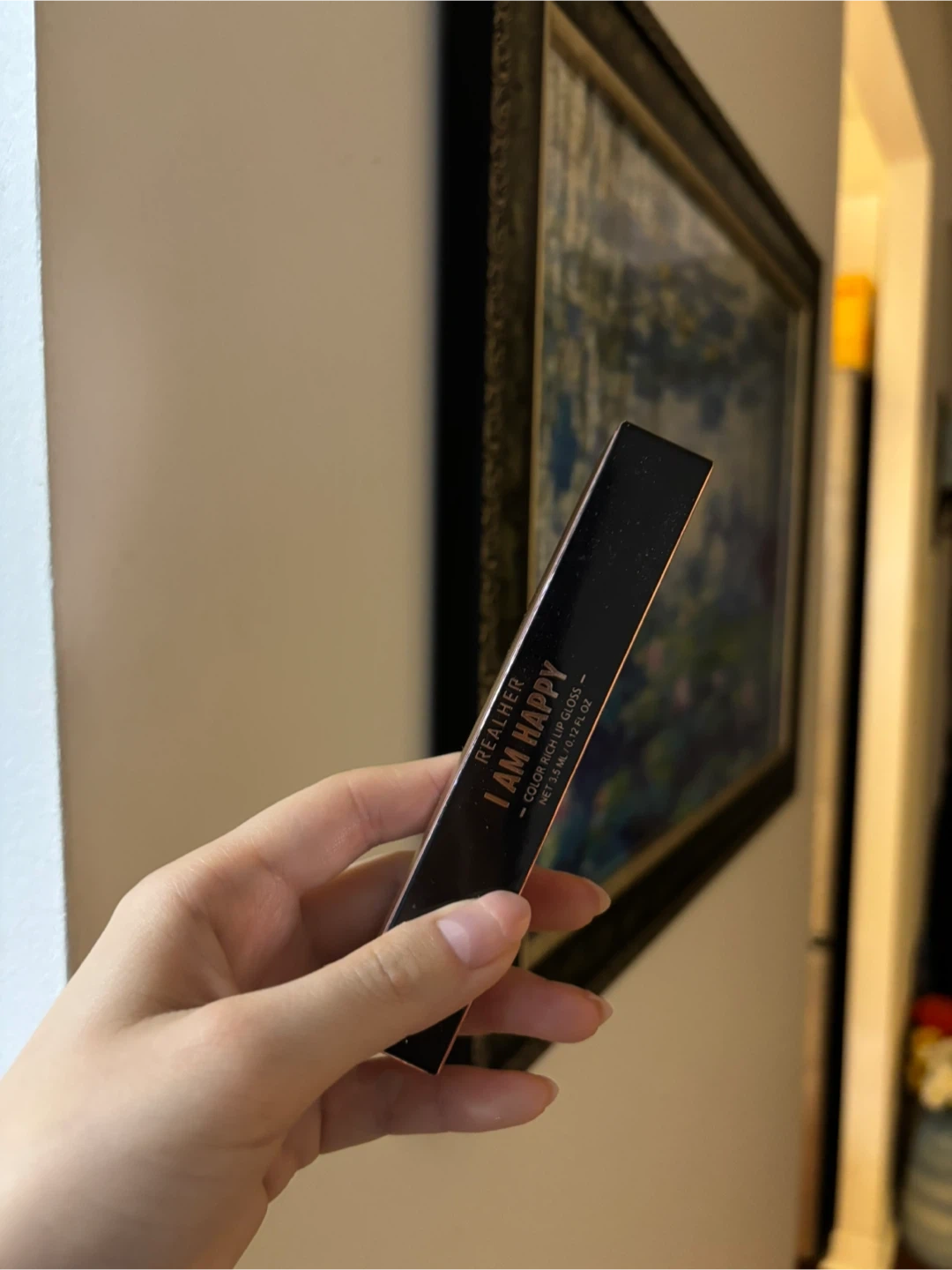 REALHER I AM HAPPY Color Rich Lip Gloss. It's a 3.5 ml (0.12 fl oz) lip gloss. This gloss is designed for a vibrant colour payoff.