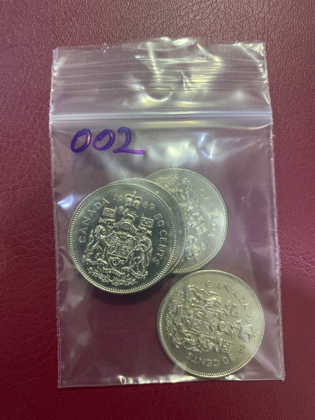 Canadian 50 Cent Coins - 1969, 1971, 1974, 1978