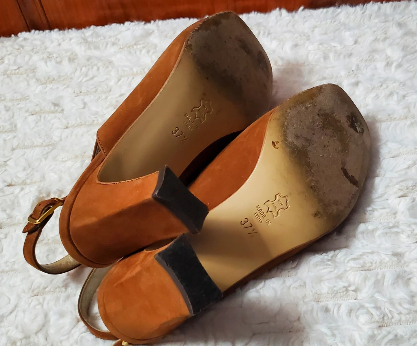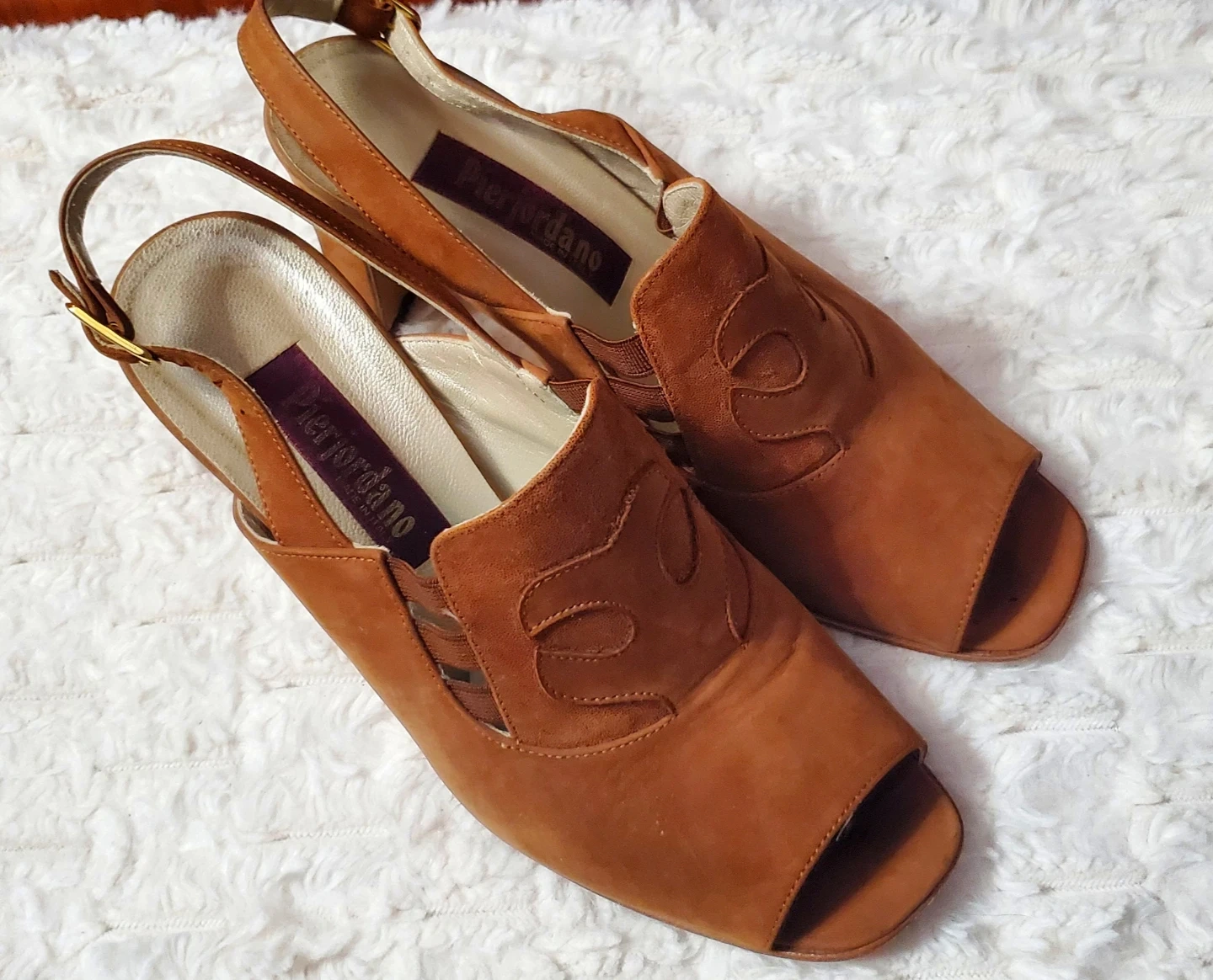 These are Pier Giordano slingback heels in a rich brown suede. The size is 37. They come with the original box. Made in Italy.