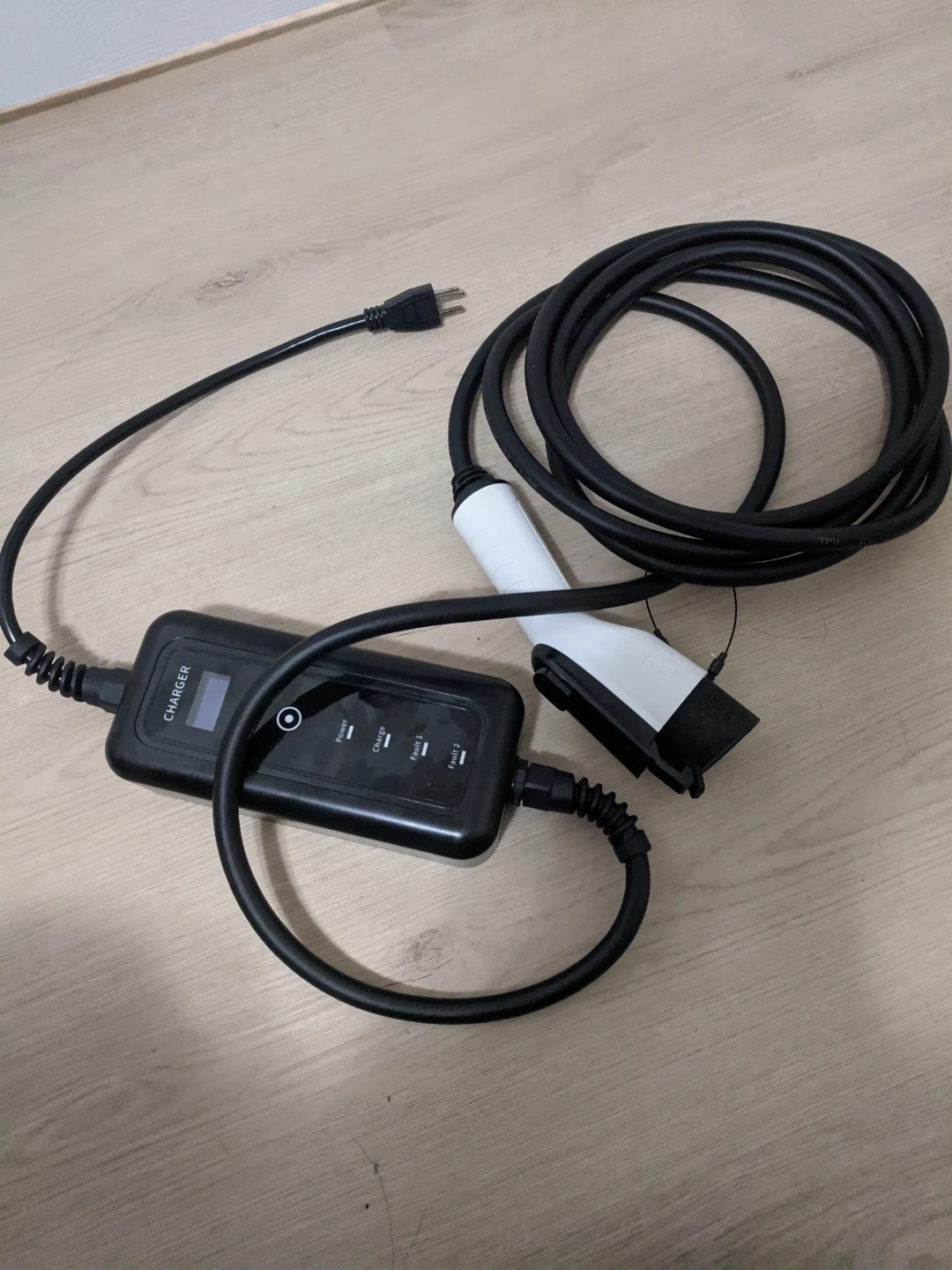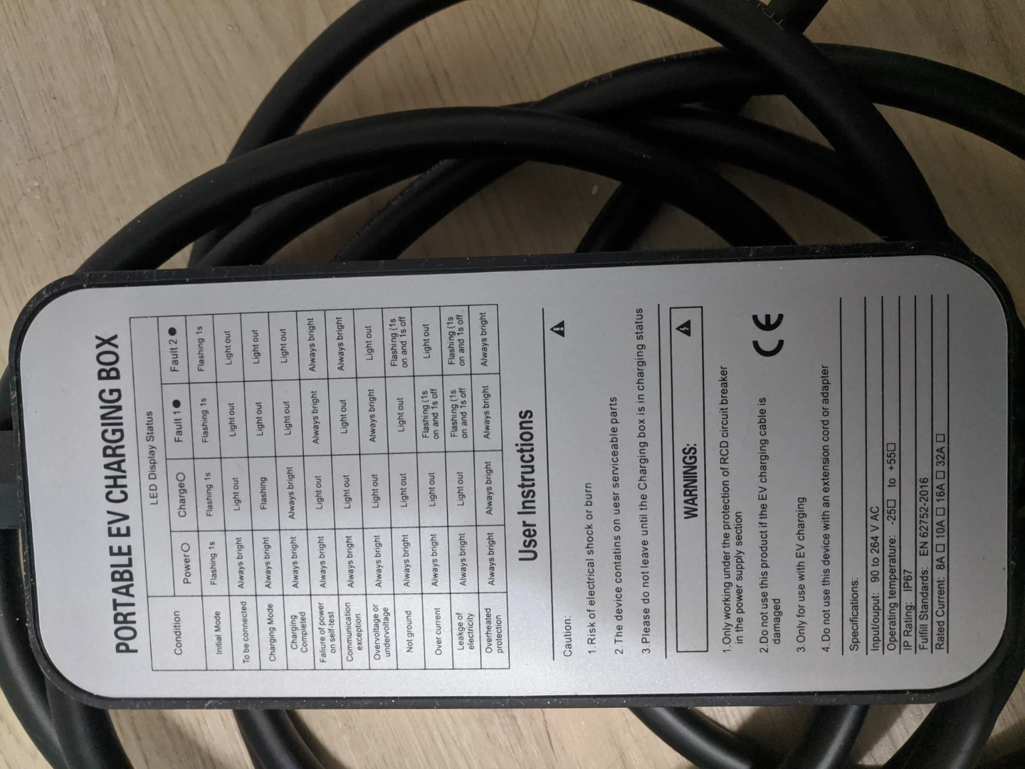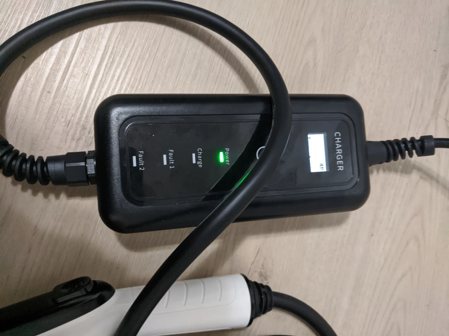 Portable EV charging box for electric vehicles. Features include charging status indicators and fault alerts. Specifications: 90-264 V AC, Operating Temperature: -25 C to +55 C, IP Rating: IP67, Rated Current: 8A, 10A, 16A, 32A.