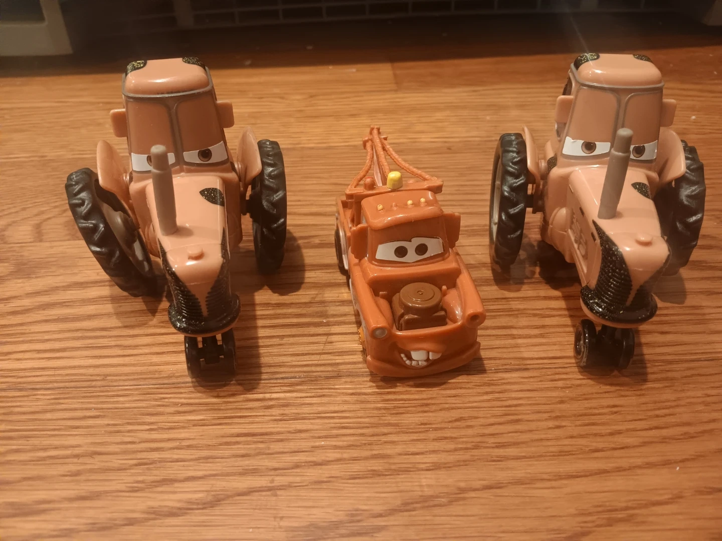 This set includes three Mater tractor toys from Disney Pixar Cars. They're made of durable plastic. Great for Cars fans!