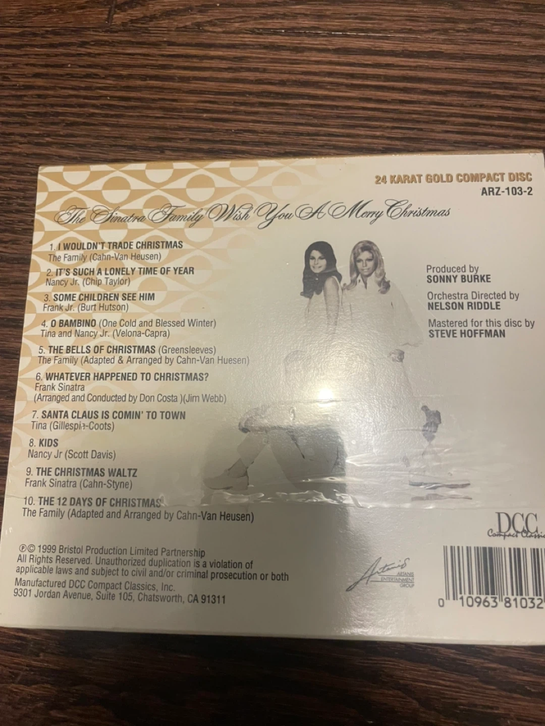 This is a 24 Karat Gold Compact Disc titled 'The Sinatra Family Wish You A Merry Christmas'. It includes the complete original artwork and liner notes. The disc is manufactured by DCC Compact Classics. BNIB
