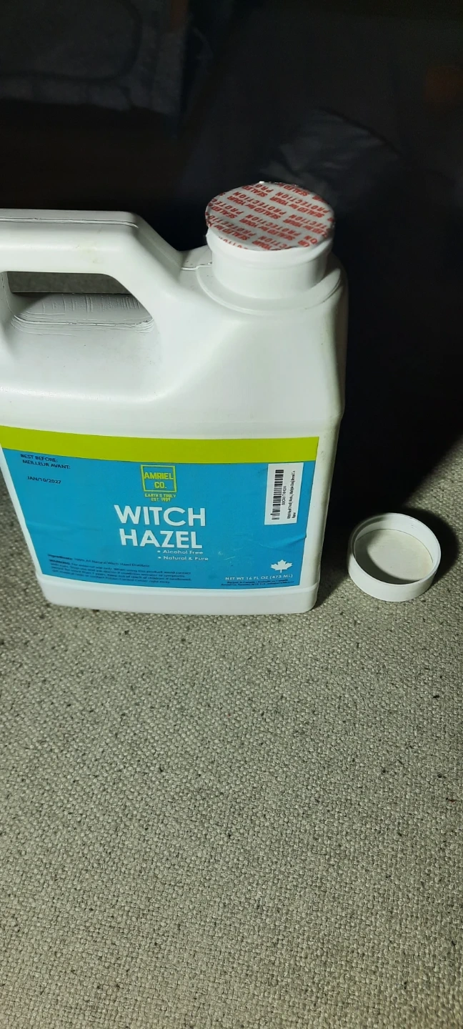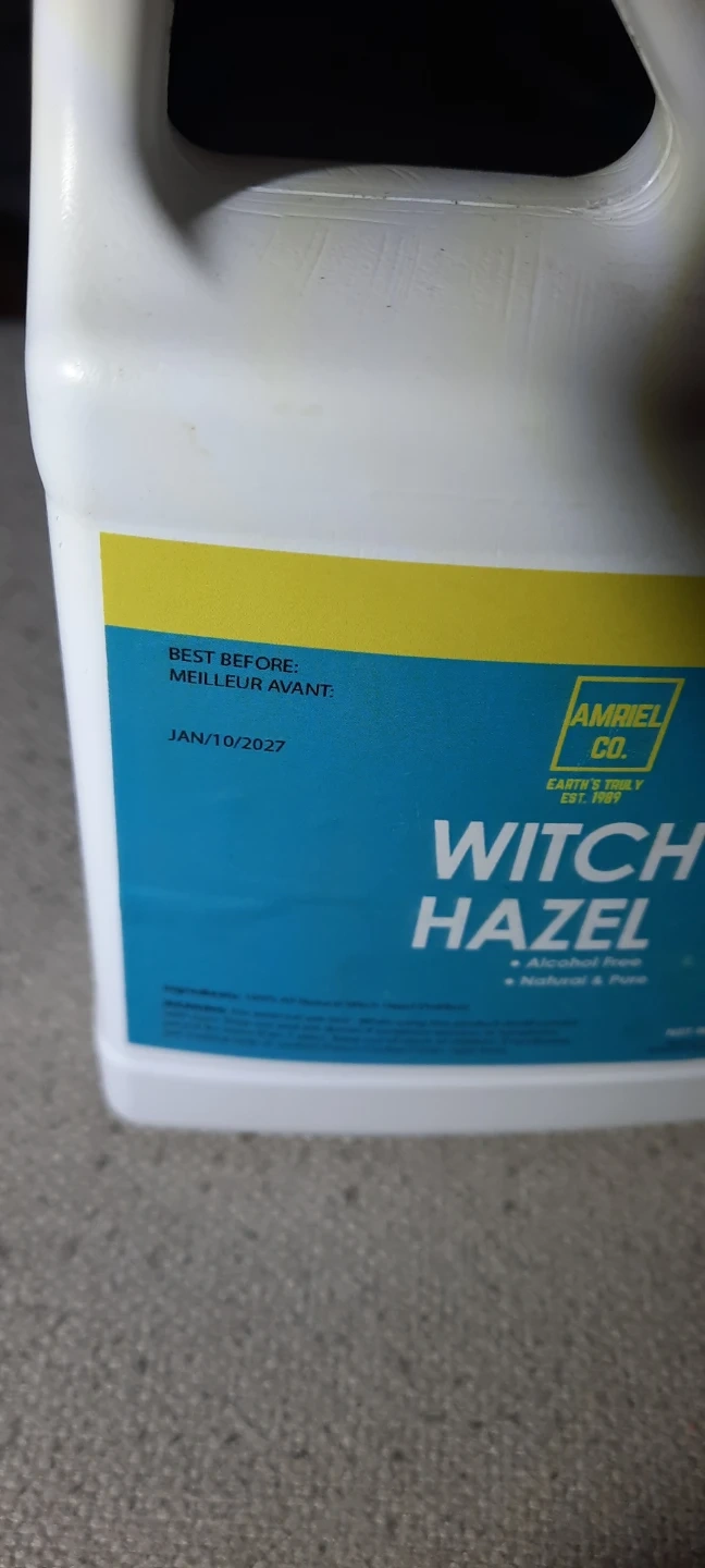 This is Amriel Co. Witch Hazel, bottled in Canada. It's alcohol-free, natural, and pure. The bottle is 16 fluid ounces (473 ml). Best before Jan 10, 2027.