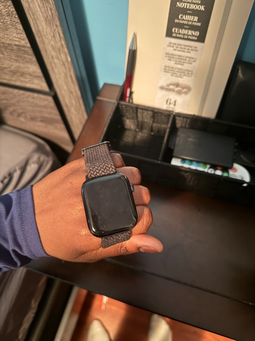 Selling an Apple Watch SE with a grey woven band. It's a smart wearable device for staying connected.