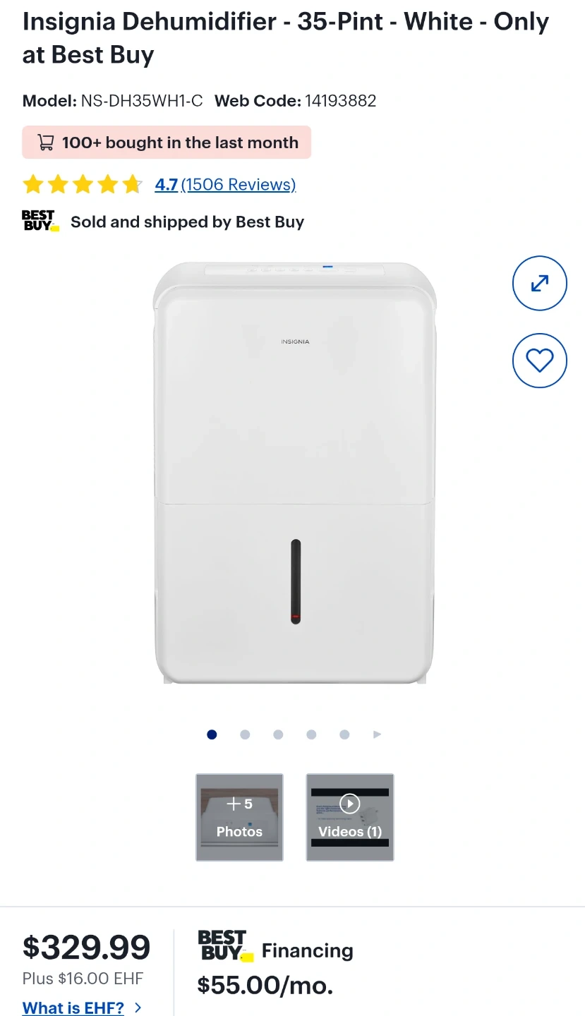 Iβm selling our Insignia dehumidifier. Itβs the 35-pint model (NS-DH35WH1-C) and works perfectly to keep humidity down. Itβs Energy Star rated, so itβs easy on the electricity bill.