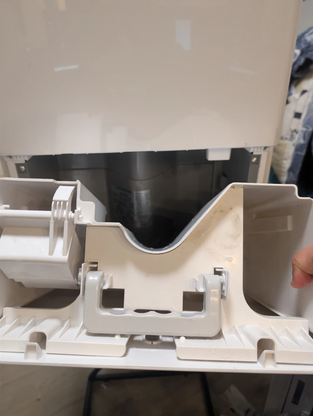 Itβs very clean (we just wiped it down and cleaned the filter) and comes from a smoke-free home. You can use the bucket or hook up a hose to let it drain automatically.