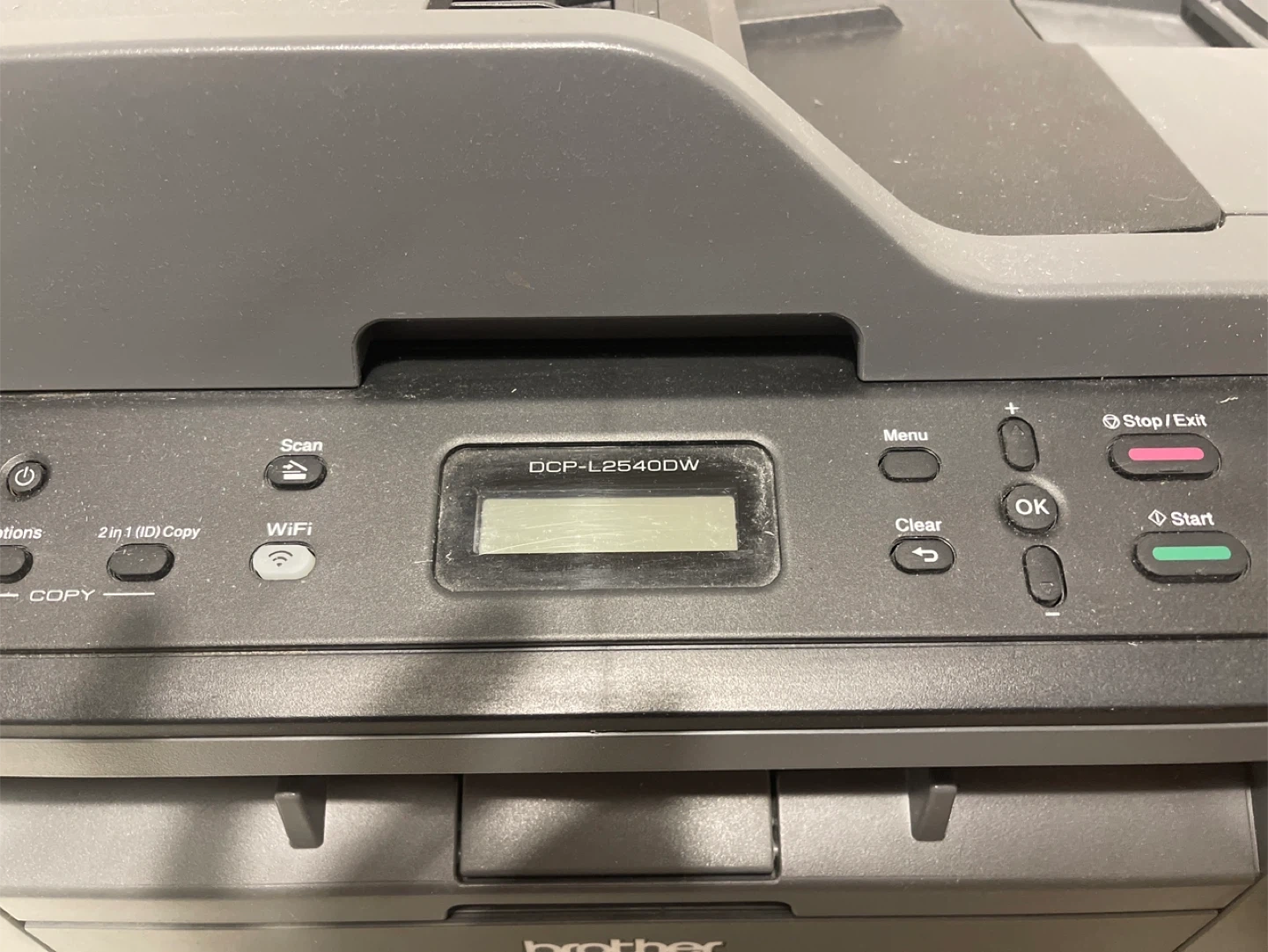 This Brother DCP-L2540DW is a wireless all-in-one laser printer. It offers print, scan, and copy functions. It's a multi-function copier with Wi-Fi connectivity. Toner cartridge not included.
