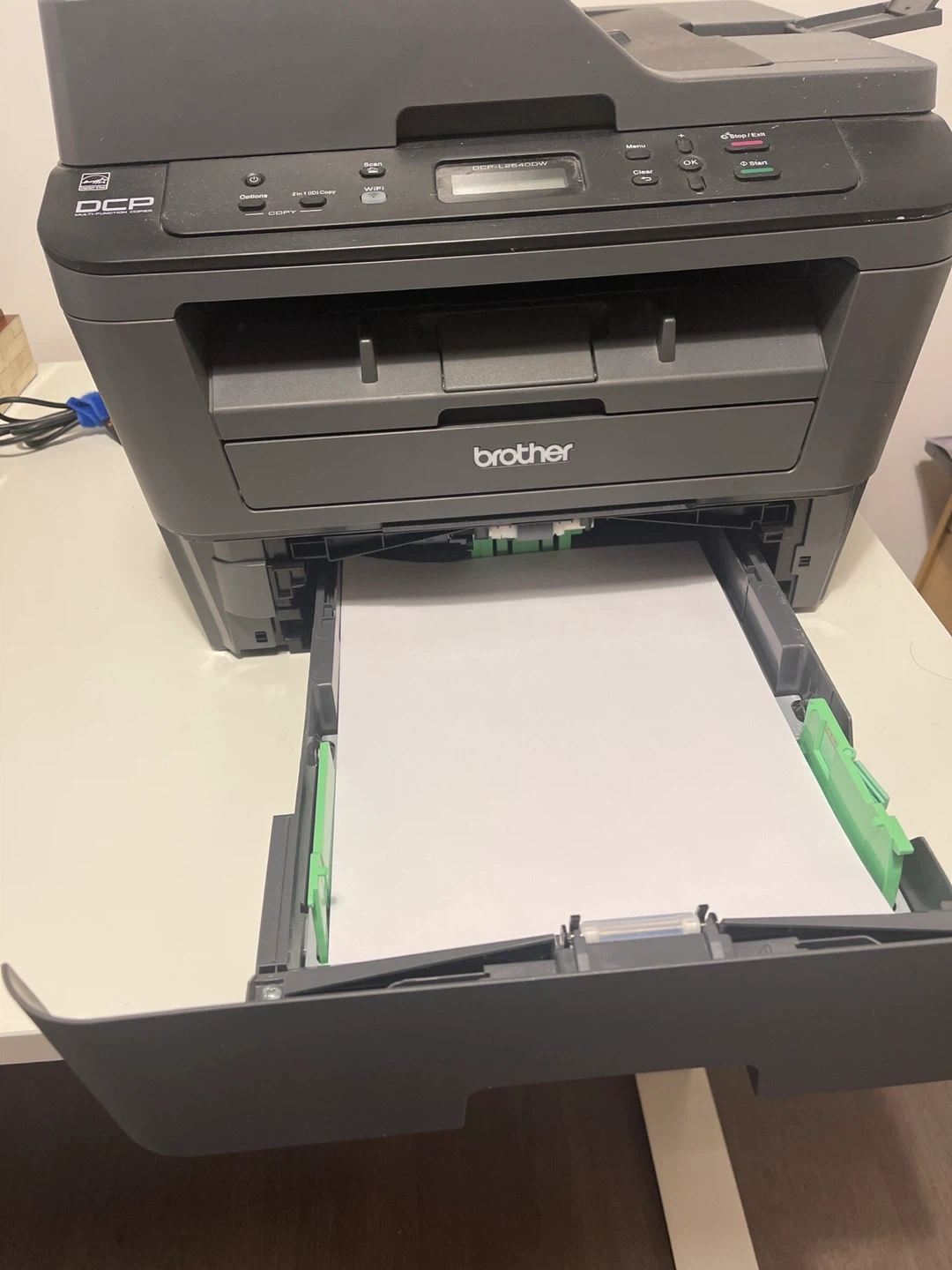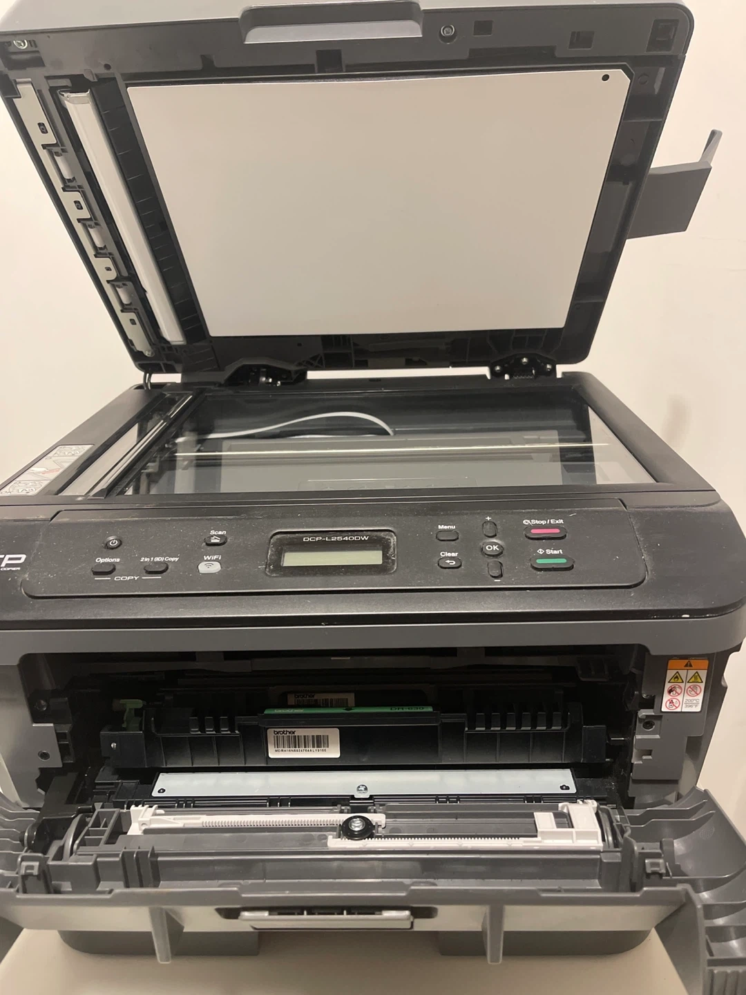 This Brother DCP-L2540DW is a wireless all-in-one laser printer. It offers print, scan, and copy functions. It's a multi-function copier with Wi-Fi connectivity. Toner cartridge not included.