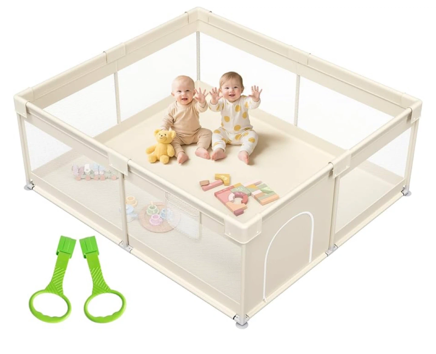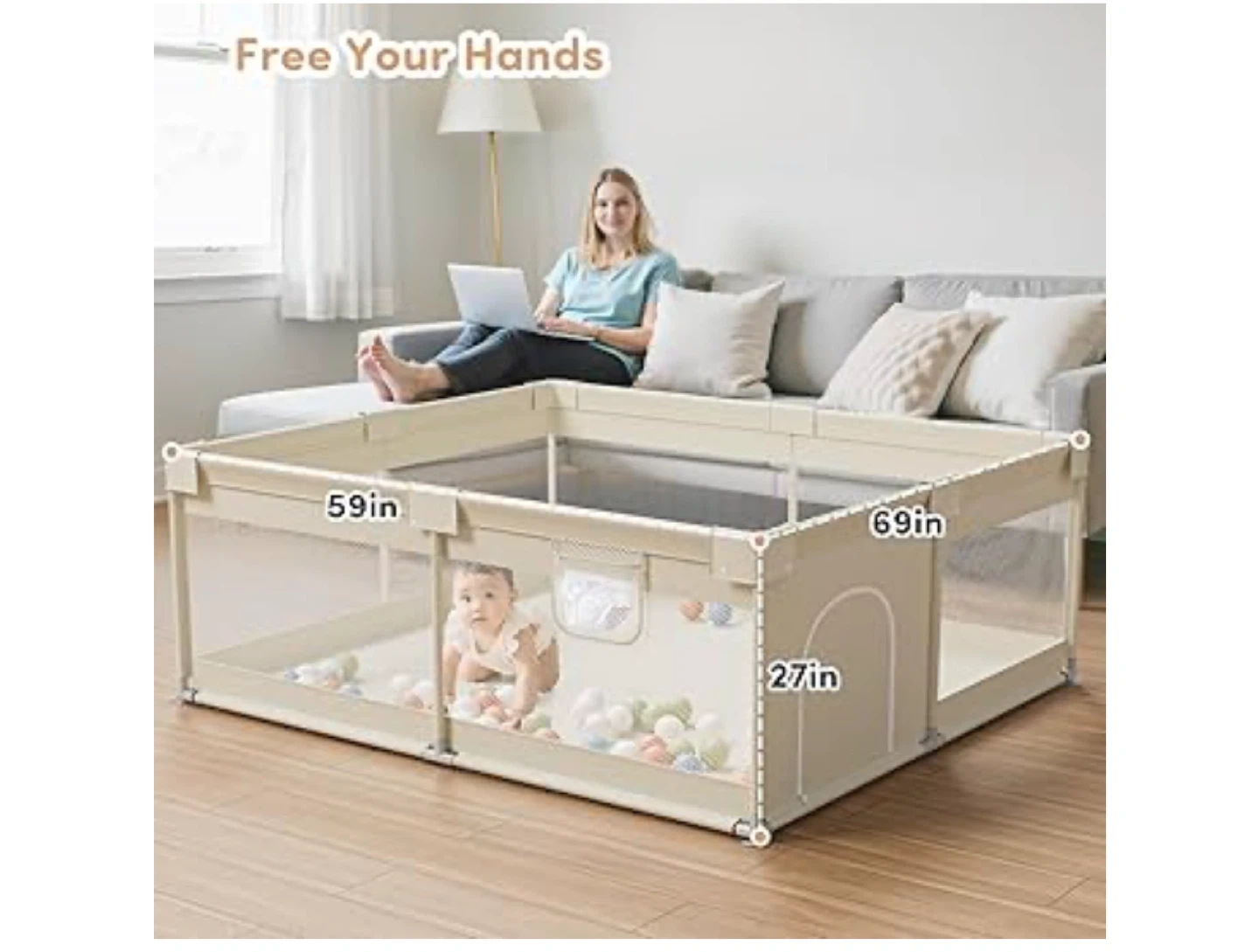 Baby Playpen Large Beige with 59" x 69" x 27" Dimensions