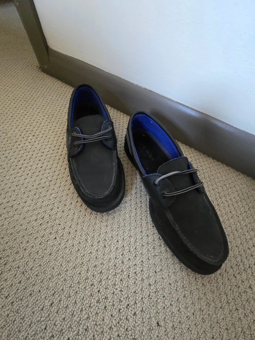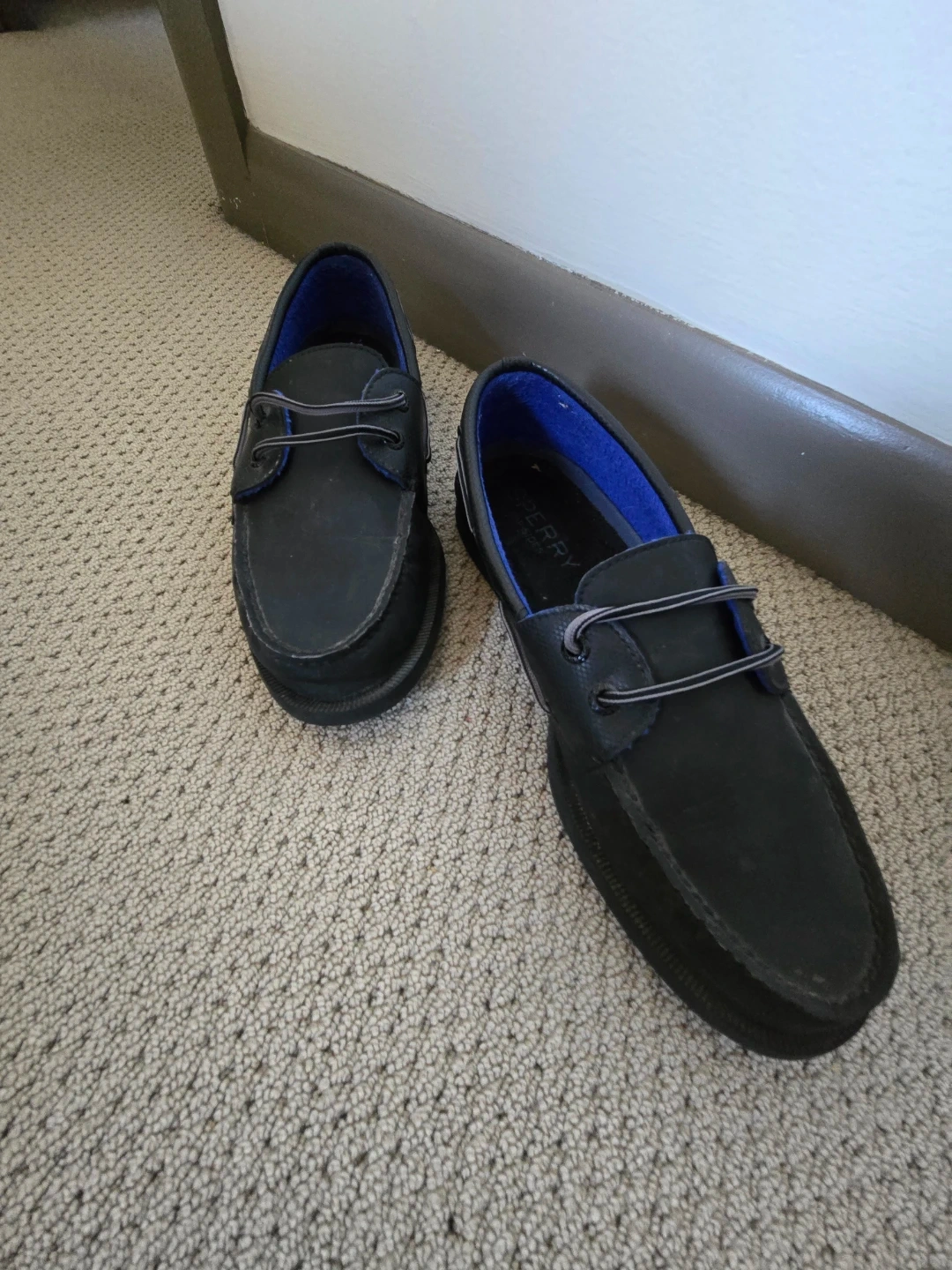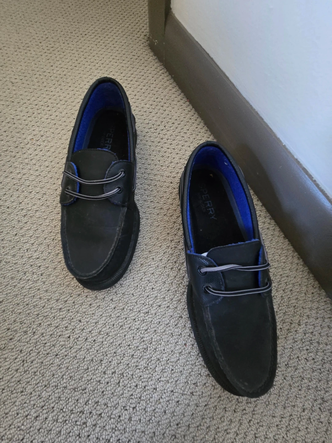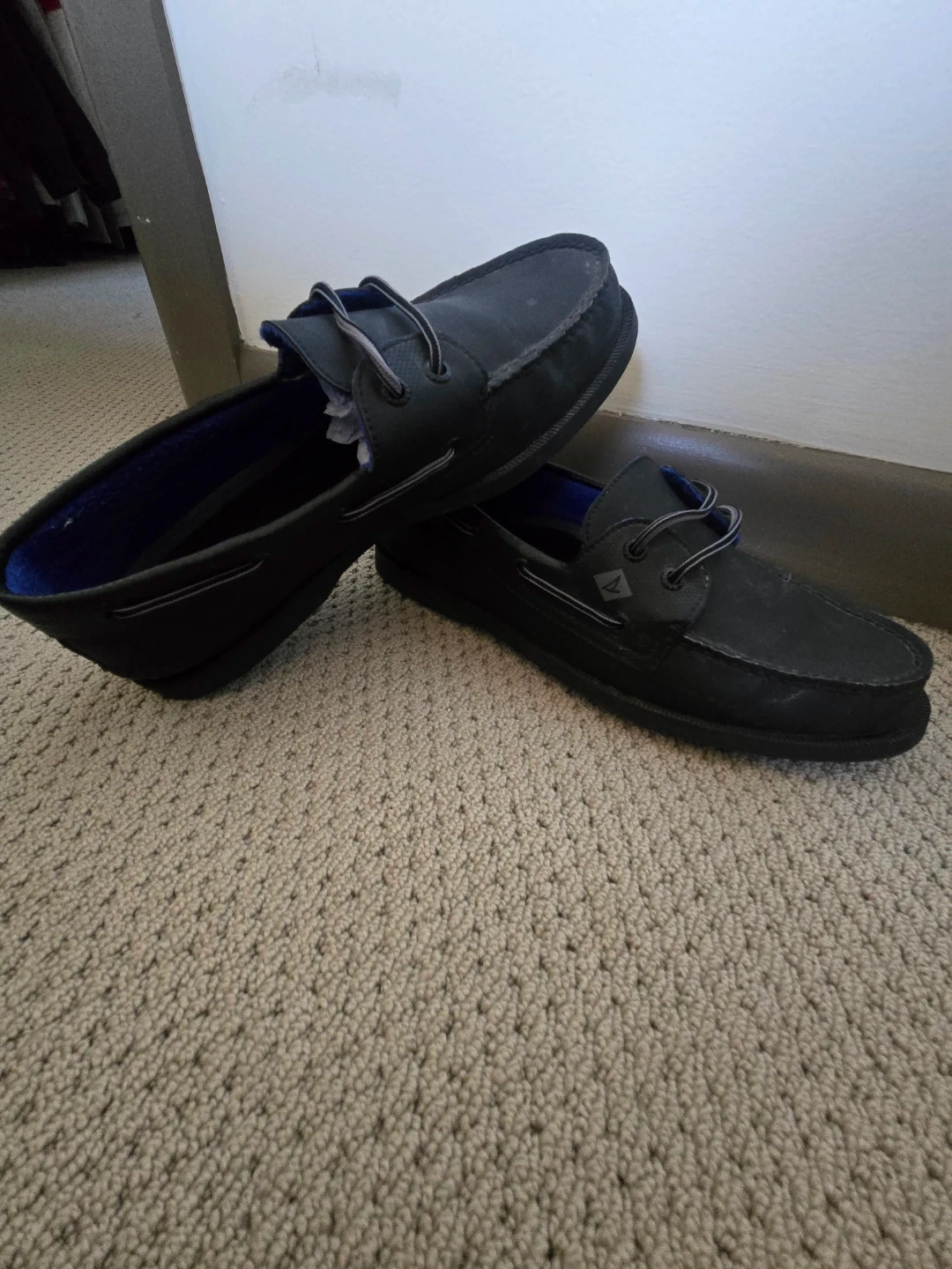 Buy & SellSperry Boat Shoes - BlackSperry Boat Shoes - Black$20Sperry boat shoes in black. These shoes feature a blue interior lining and traditional lacing. US 8.5 ConditionLike newSizeUS 8.5BrandSperryWHERE TO MEETlakeshore and cookView MapSELLERverified259020Lakeshore600 reviews0 chats·0 favorites·5 viewsSEND CHAT TO SELLERHi 259020! I’m interested in your listing.Hi 259020! I’m interested in your listing.Get the Karrot app to chatSign In to chat