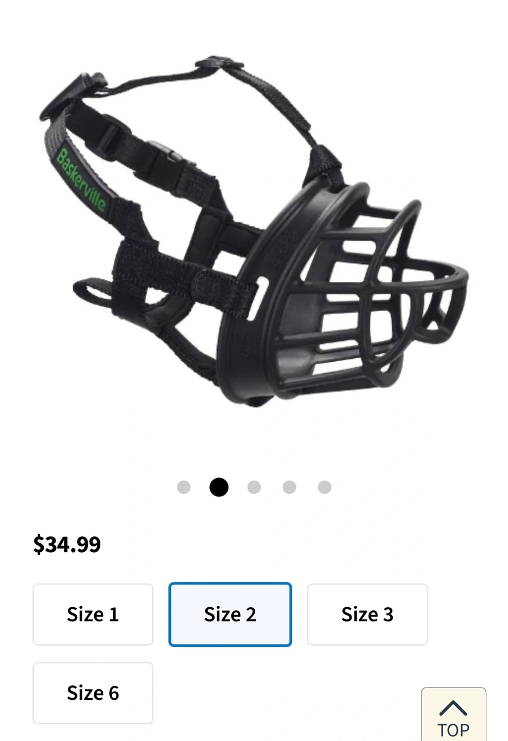 This is the humane muzzle because they can eat and drink, and it doesn’t clap down on their mouth and face.