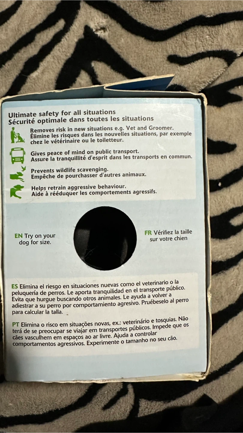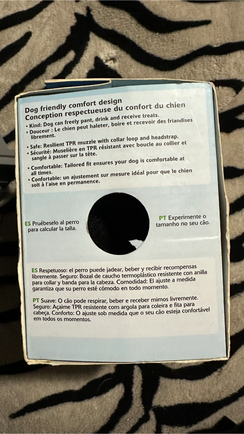 This is the humane muzzle because they can eat and drink, and it doesn’t clap down on their mouth and face.