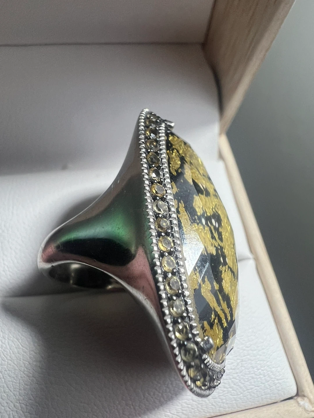925 citrine Ring with Gold Leaf Inlay