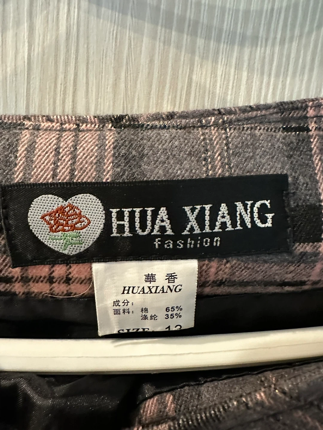 This pink and grey plaid skirt is made from a blend of 65% cotton and 35% viscose. The skirt has lace-up detailing at the waist and decorative pocket flaps. It’s so stylish and matches well with winter clothing! It’s also warm and cozy!