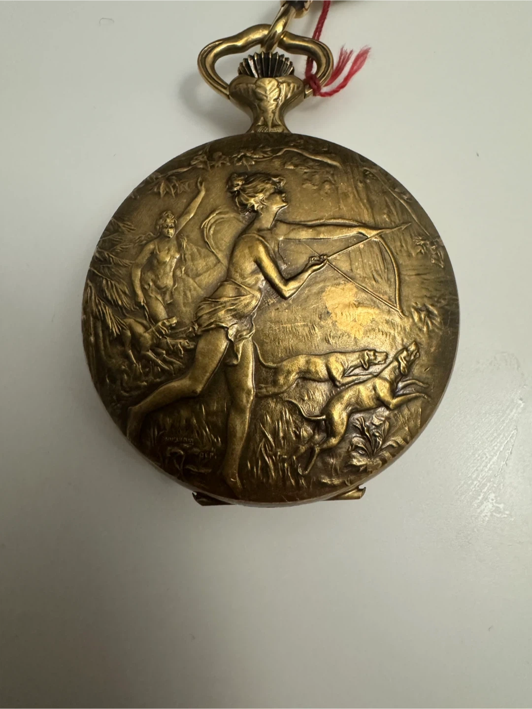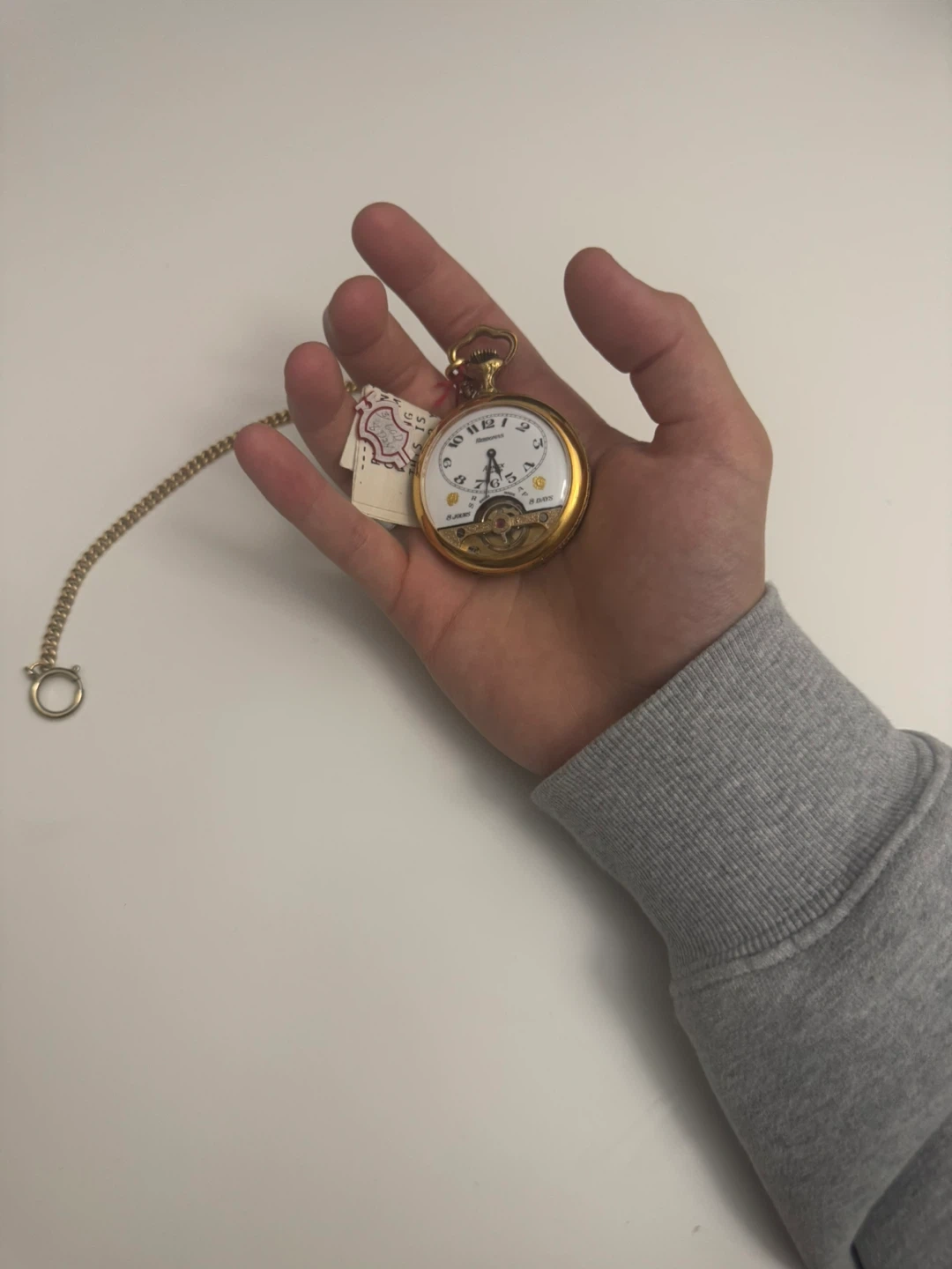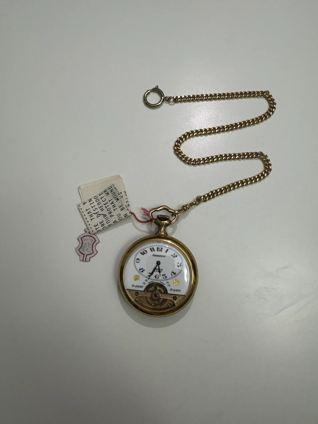 As we were cleaning his house, we found a couple of his antiques; we discovered this Hebdomas 8 day pocket watch.