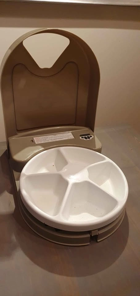 Selling a used cat feeder. It rotates through 5 compartments based on the time that you set it at. Uses D batteries. I've never had an issue with it, works great for weekend getaways or just regular feeding.