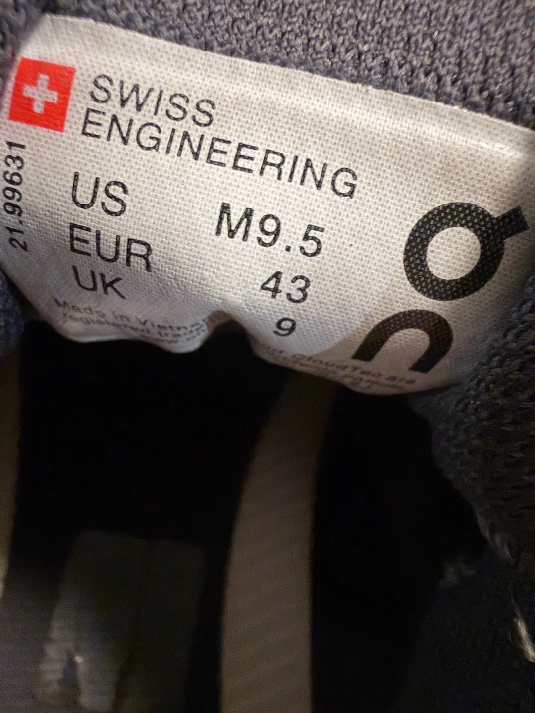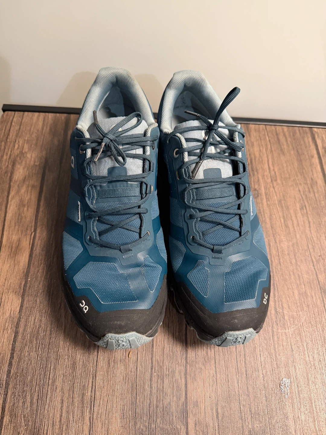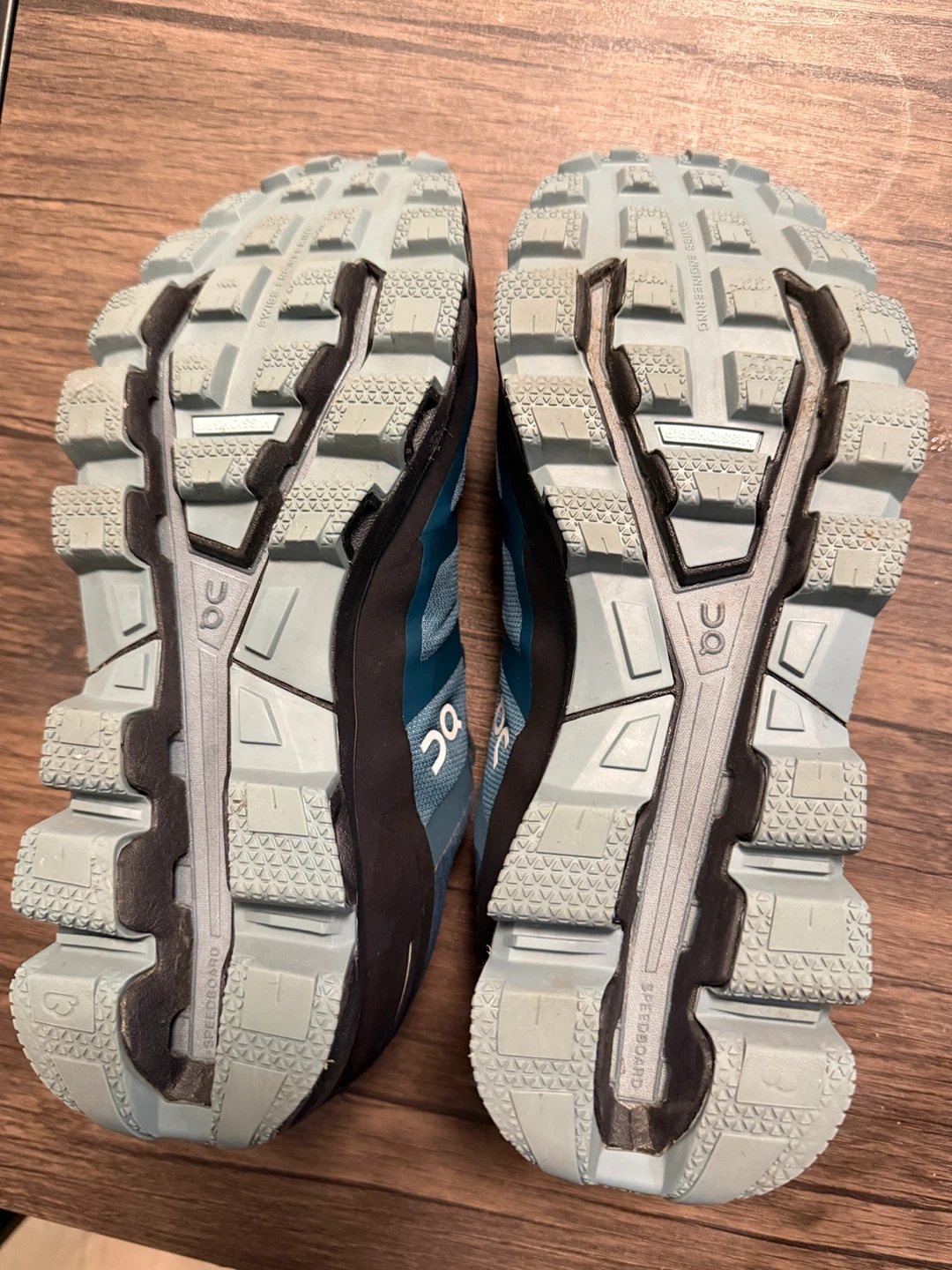 On Running Swiss Engineering trail/running shoes in blue. Waterproof, clean, well kept, and very comfortable. Soles in great shape with plenty of life left. Lightweight and breathable.