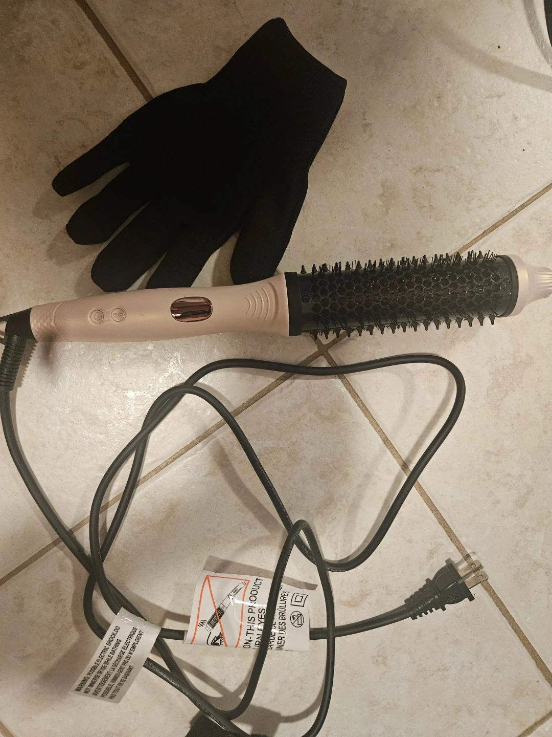 This is a rotating hot brush hair styler. It's a styling tool designed for creating volume and waves. Includes a protective glove.