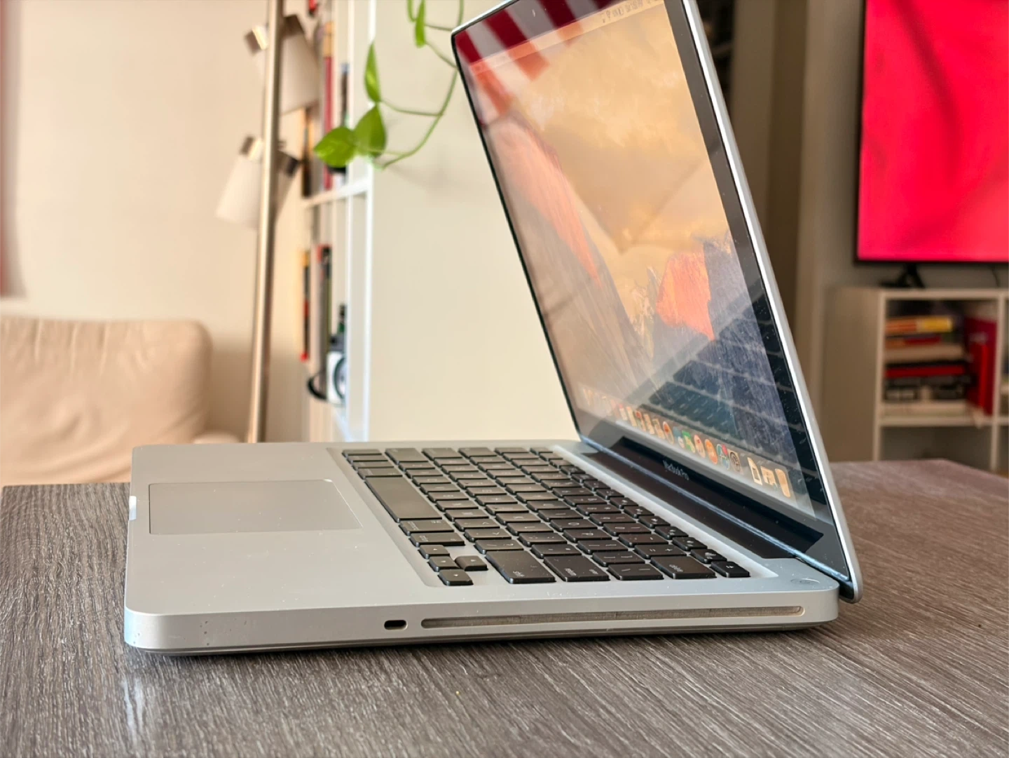 This is a silver Apple MacBook Pro laptop. It's a reliable machine for everyday tasks and productivity. The keyboard are in good condition.