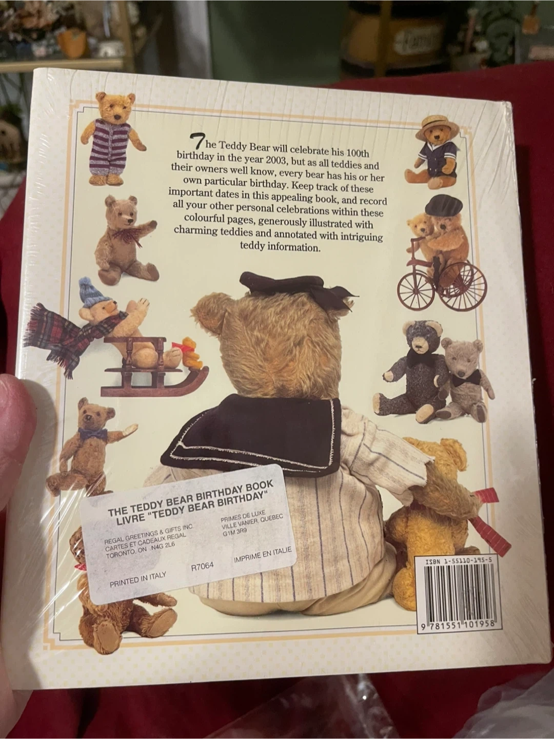 This is "The Teddy Bear Birthday Book". It celebrates the 100th birthday of the teddy bear. This book is illustrated with colourful pages and annotated with teddy bear information. Printed in Italy. To record birthdays or as a diary/journal.