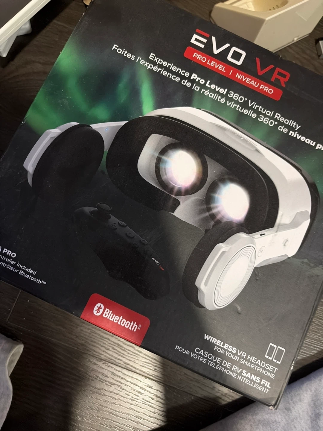 Experience 360° virtual reality with this wireless VR headset for your smartphone. It's Pro Level and includes a Bluetooth controller. This headset provides an immersive experience for your smart devices.