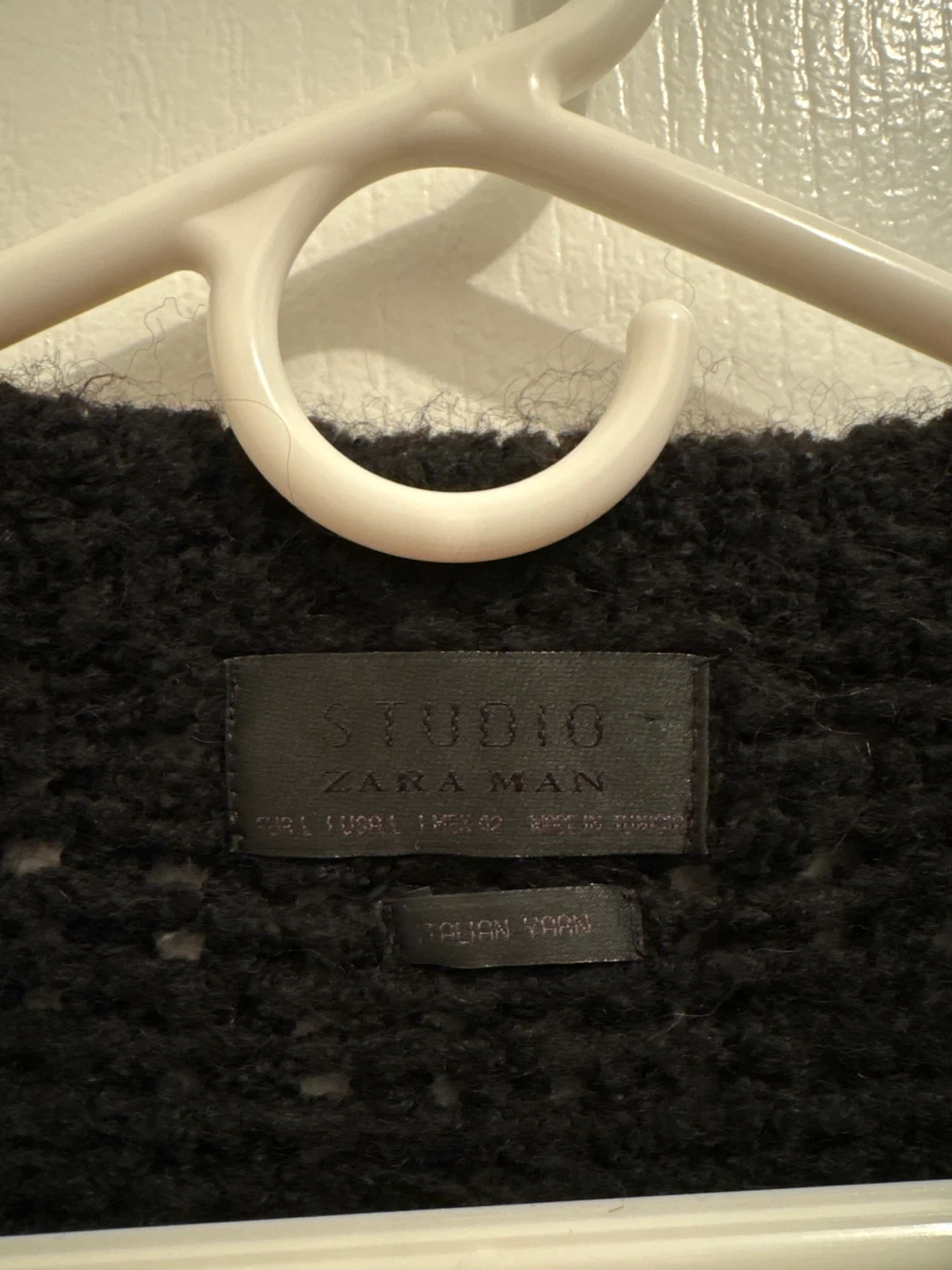 This Zara Man Studio sweater features a textured knit design. It's made with Italian yarn for a cozy feel. Crafted in Turkey.