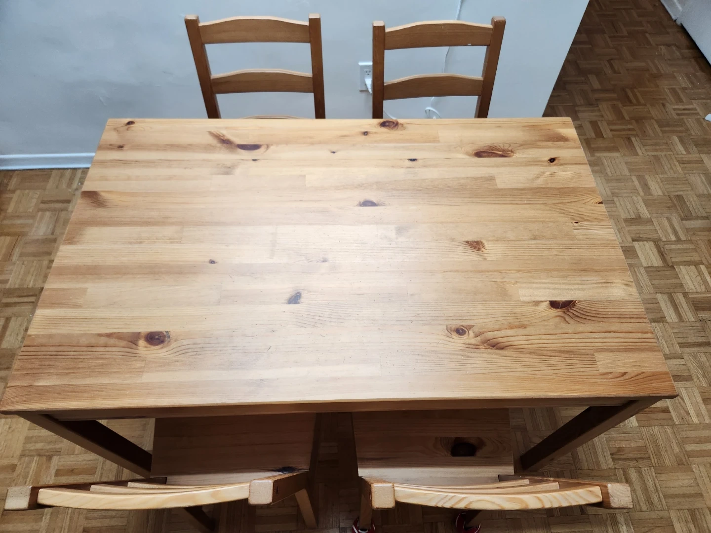 Buy & SellWooden Dining Table and 4 Chairs SetWooden Dining Table and 4 Chairs Set$20Ikea wooden table with 4 chairs. Moving out sale and only for Jan 26. Pick up only and take it as it is. ConditionOkayWHERE TO MEETTim HortonsView MapSELLERverifiedTaeNewtonbrook E28124 reviews6 chats·2 favorites·80 viewsSEND CHAT TO SELLERHi Tae! I’m interested in your listing.Hi Tae! I’m interested in your listing.Get the Karrot app to chatSign In to chat