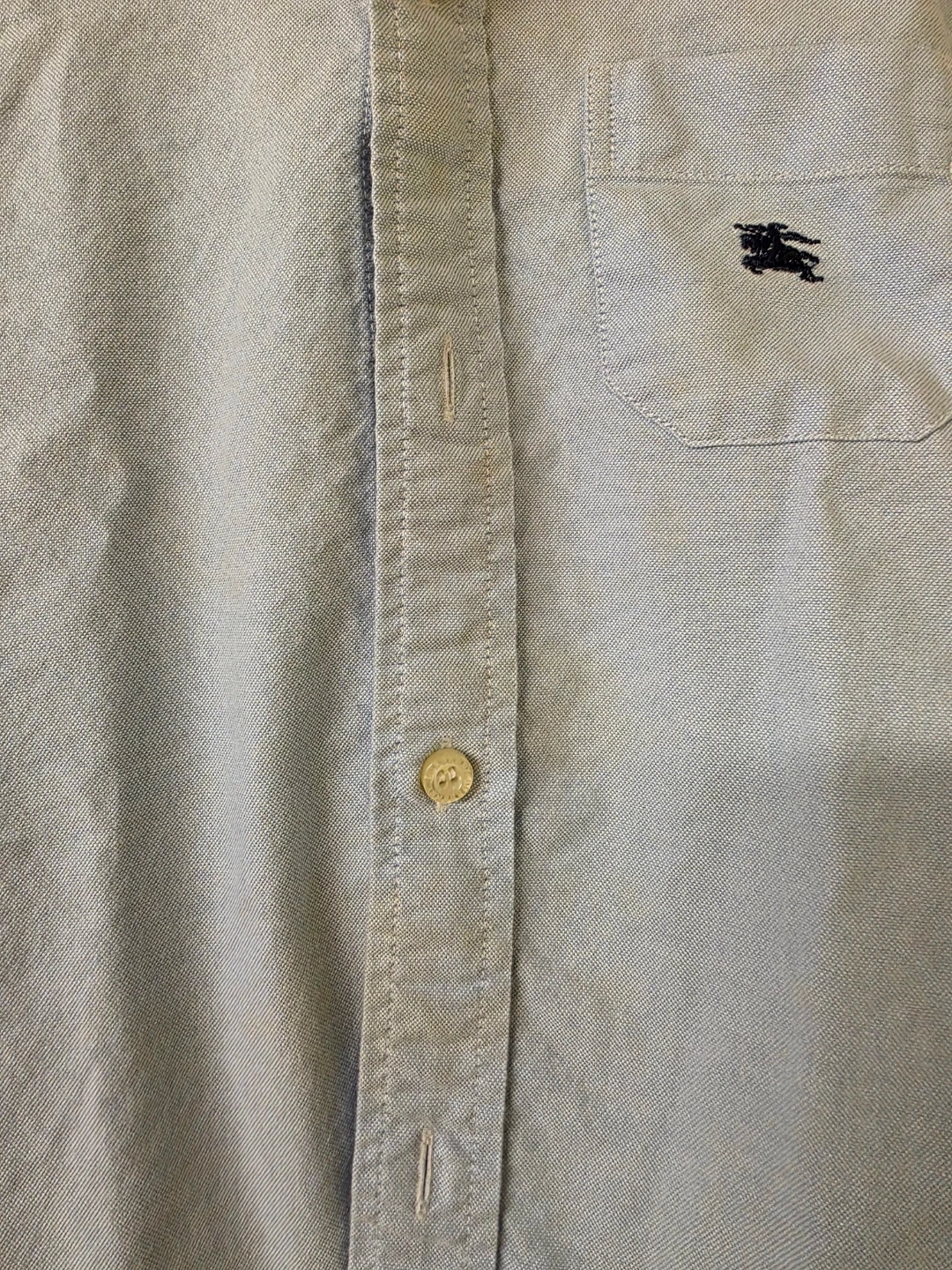 Burberry button-down shirt for little ones. Made in Turkey. Classic light blue colour with embroidered knight logo. Size 2Y/92cm. Slight juice stain (as shown in picture). Pick up by South Arm.