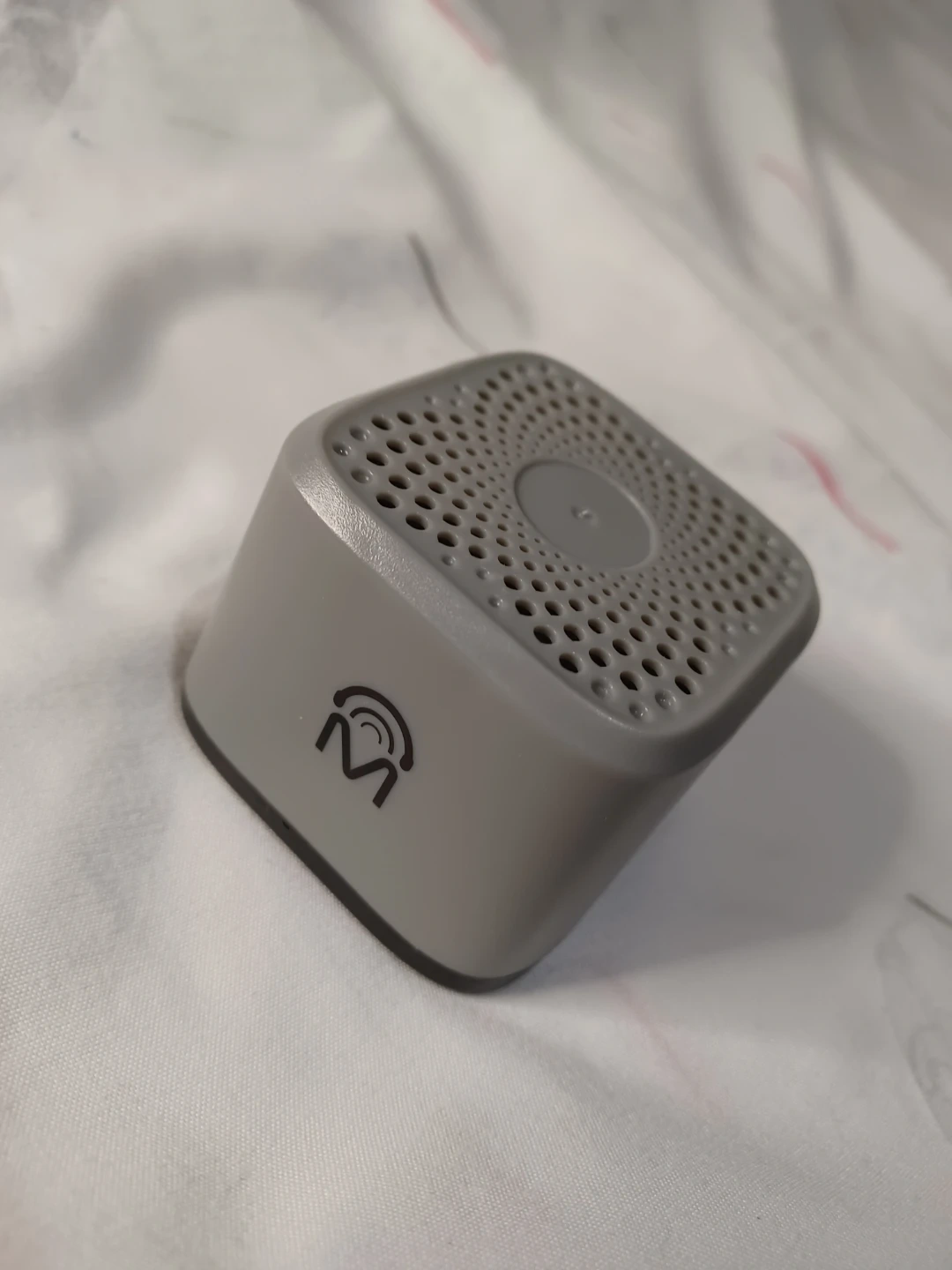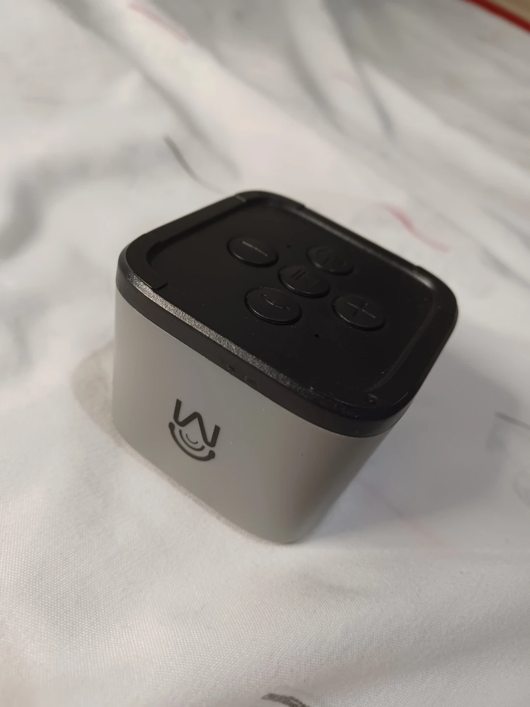 Woox mini Bluetooth speaker. Compact and portable for on-the-go listening. Features simple button controls on top.