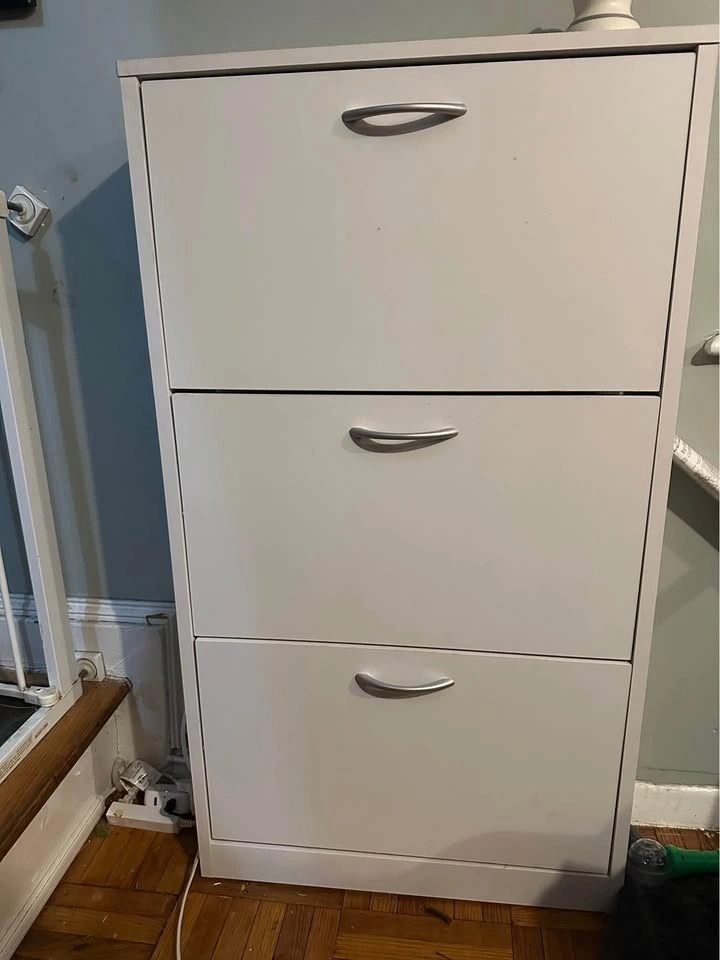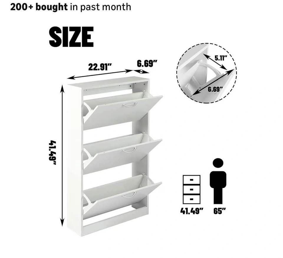 HOPUBUY Shoe Cabinet for Entryway, White Narrow Shoe Storage Cabinet Flip Down Shoe Rack Wood 3 Tier Shoe Organizer for Home and Apartment