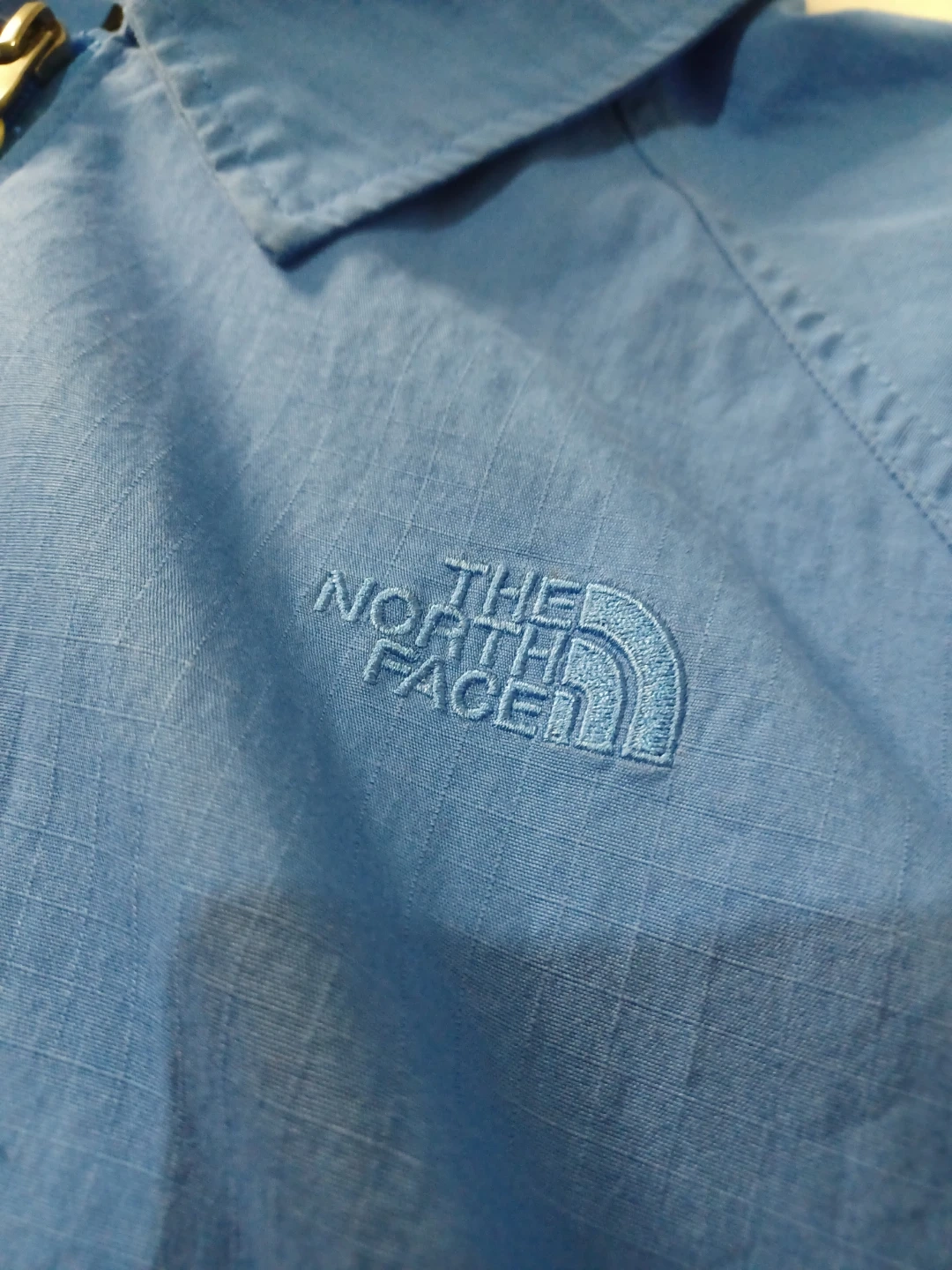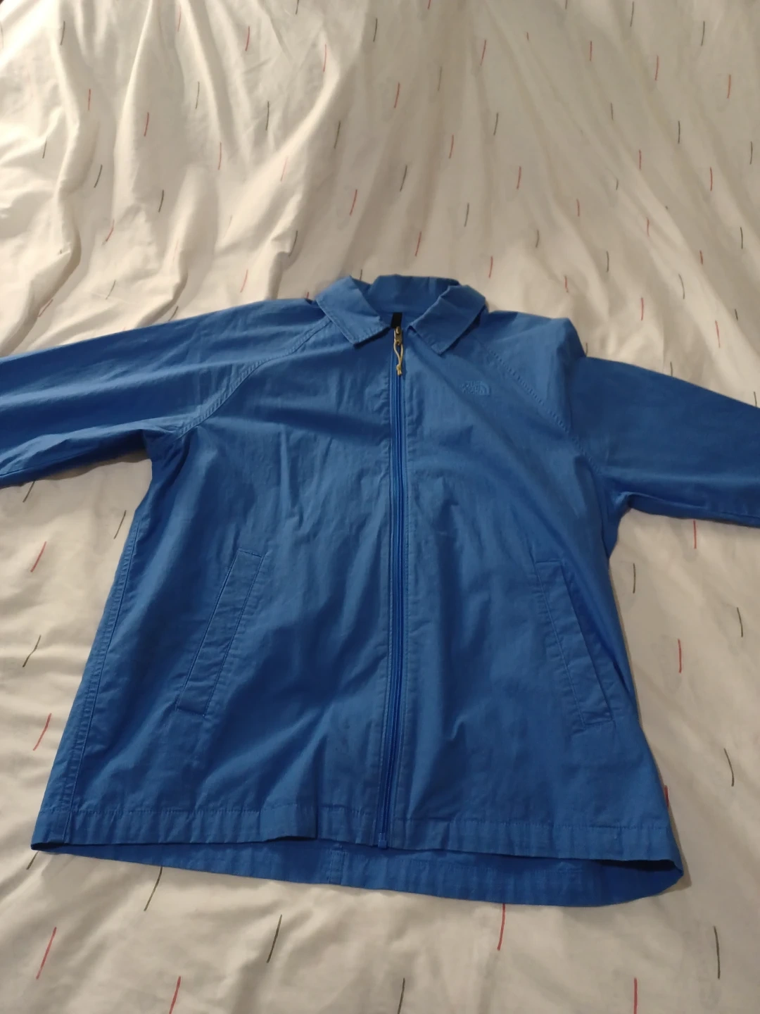 This is a blue jacket from The North Face for men. It's a size medium and made in Vietnam. It features a full-zip front and two front pockets.