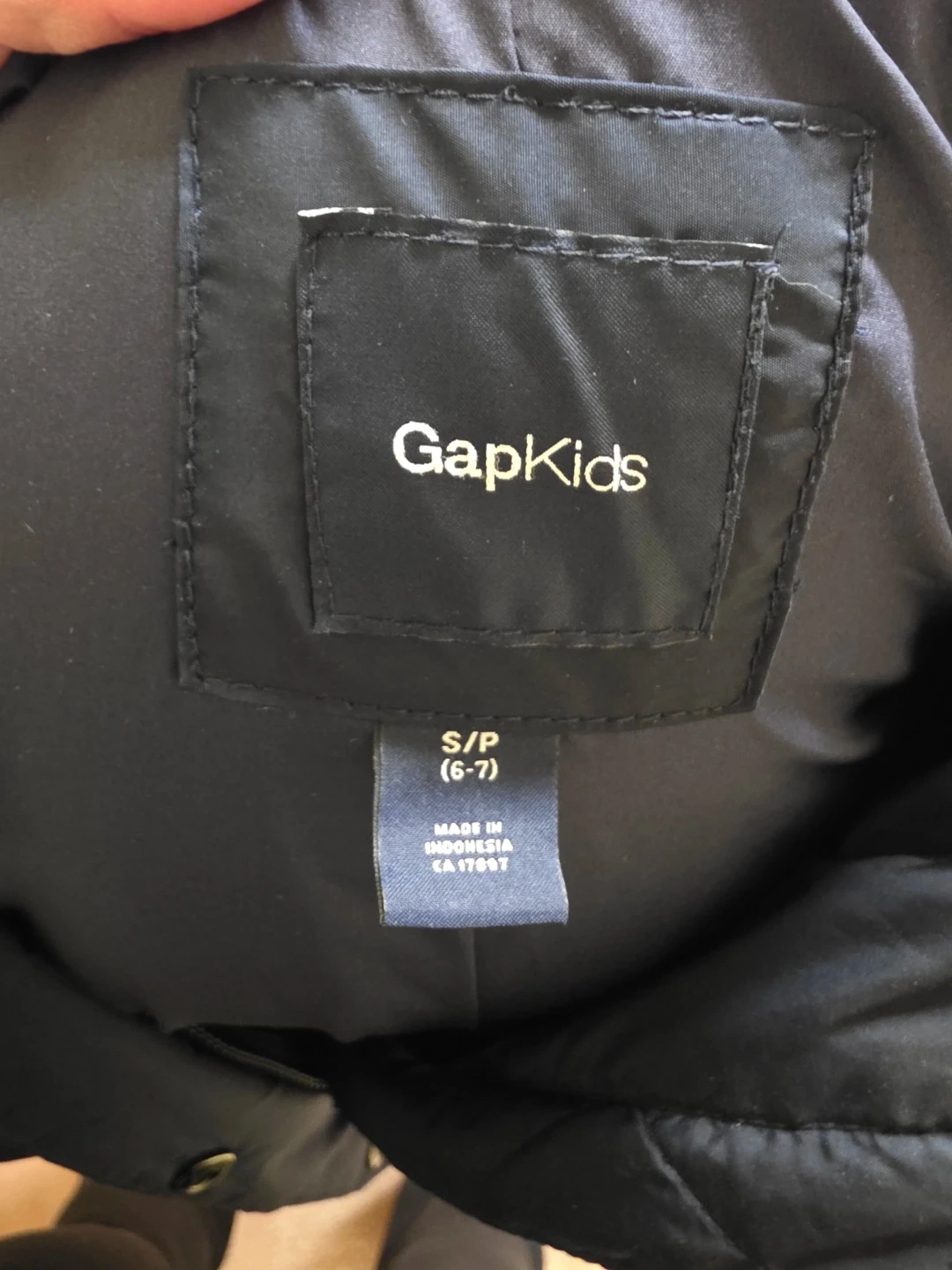 This GapKids puffer coat is navy blue and features a removable faux fur hood. It's a size S/P (6-7). It's perfect for keeping kids warm during colder months! Pick up by South Arm.
