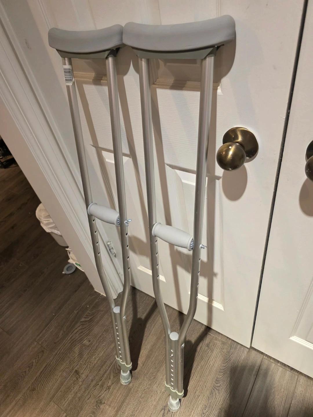 High-quality, lightweight aluminum underarm crutches for sale. Perfect for surgery recovery, broken leg, ankle sprains, or ACL/knee rehab. These are very clean and in good working condition.