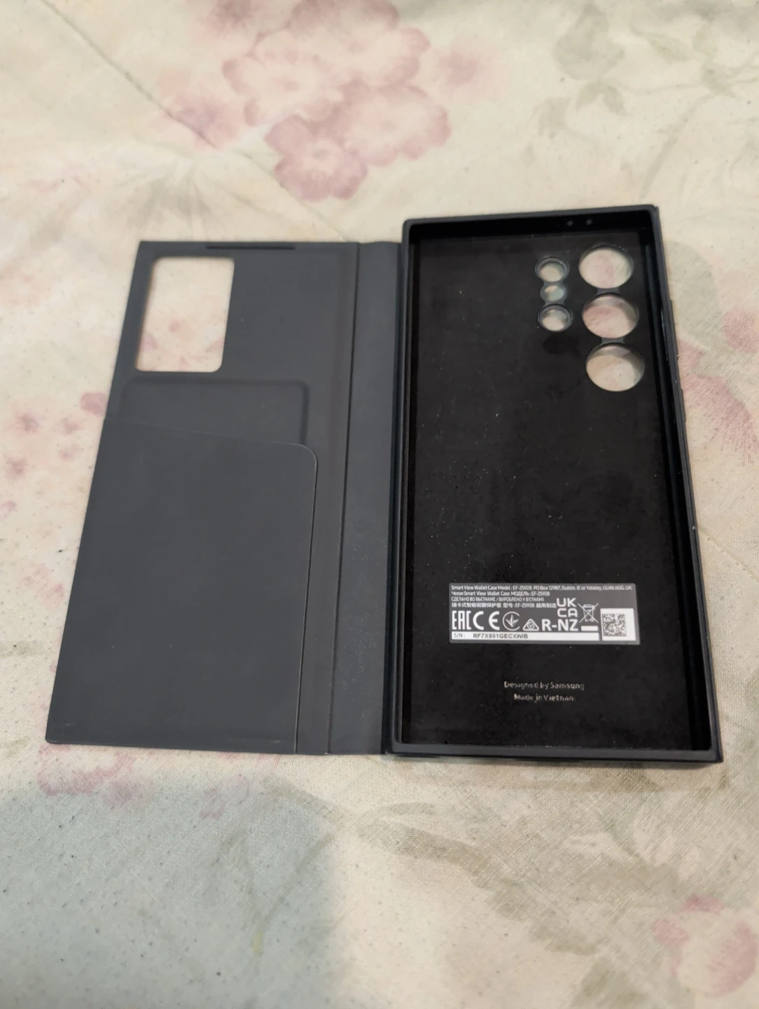 This is a Samsung S24 Ultra case. It's designed for protection and has a sleek, black finish. It comes with card slots inside for convenience. It is the authentic original from Samsung itself. Got it my my phone but I never used it. Price negotiable